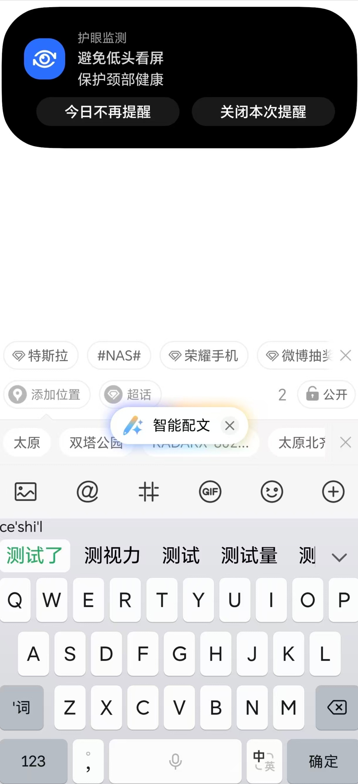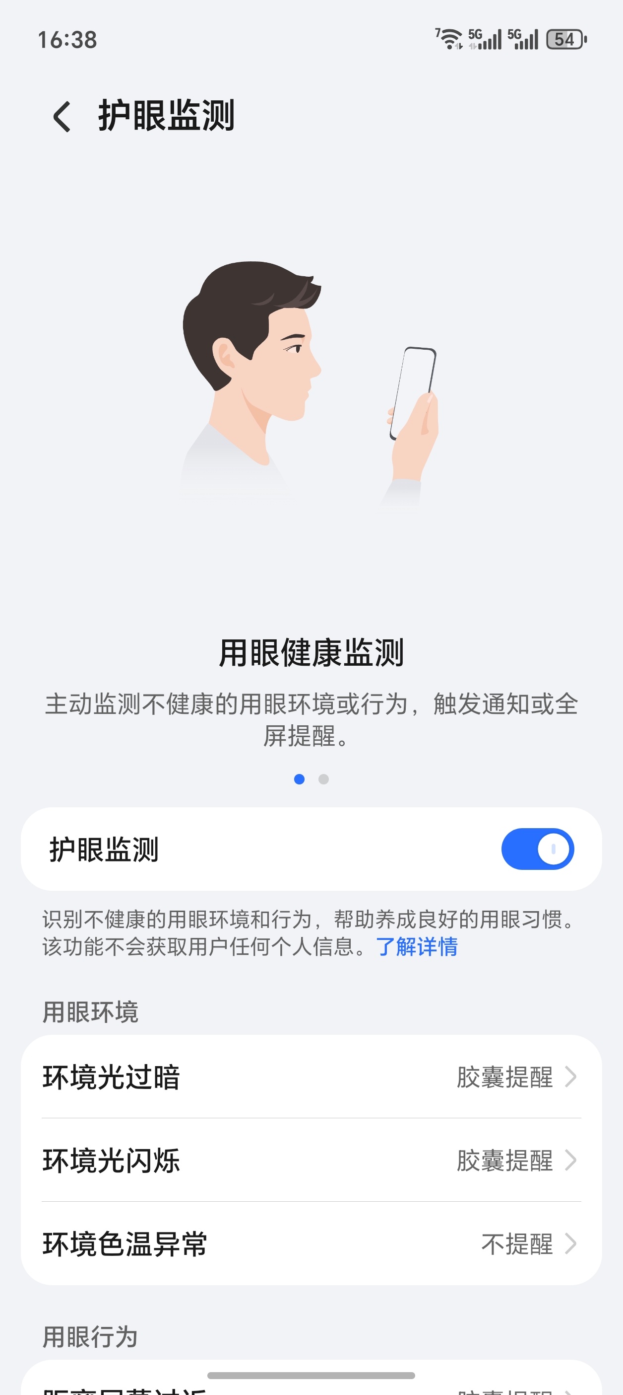 荣耀Magic8 Pro这个可以说是全方位护眼,首先是这个Al绿洲护眼屏,6000nits峰值亮度,九大Al护眼科技全面模拟自然光,是首款得到莱茵全局护眼5.0认证的手机。最关键的是软件适配也做到了极致,护眼监测,长时间看手机提醒、侧卧、低头看都提醒、最关键是这个距离屏幕过近提醒,非常实用。如果你的眼睛看其他品牌手机不舒服,可以试试今年的Magic8,绝对能缓解眼睛疲劳、干涩。