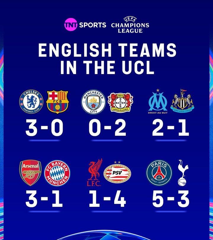 本周欧战、赛后总结 随着斯特拉斯堡2-1逆转水晶宫,本周欧战法甲球队面对英超球队实现了三连杀,大巴黎5-3战胜热刺、马赛2-1逆转纽卡斯尔,里尔、里昂在欧联杯分别大胜各自对手,摩纳哥2-2战平帕福斯,唯独尼斯0-3不敌波尔图成为法甲本轮唯一输球的球队! 英超方面,欧冠只有切尔西和阿森纳赢球,蓝军3-0战胜巴萨、枪手3-1力克拜仁,其余出征的球队全部失利,曼城0-2勒沃库森、利物浦1-4埃因霍温,欧联维拉和森林也都赢球,总战绩4胜3负! 西甲马德里双雄双双赢球,贝蒂斯在欧联凯旋,毕尔巴鄂竞技收获一场平局,比利亚雷亚尔、塞尔塔、巴列卡诺三队全部输球,总战绩3胜1平3负! 德甲大黄蜂、药厂、斯图加特各自击败各自对手,拜仁、法兰克福、美因茨全部翻车,弗莱堡收获平局,总战绩3胜1平3负! 意甲亚特兰大、那不勒斯、尤文图斯、罗马、博洛尼亚五支球队守卫了意甲荣光,仅国米和佛罗伦萨输球,总战绩5胜2负!