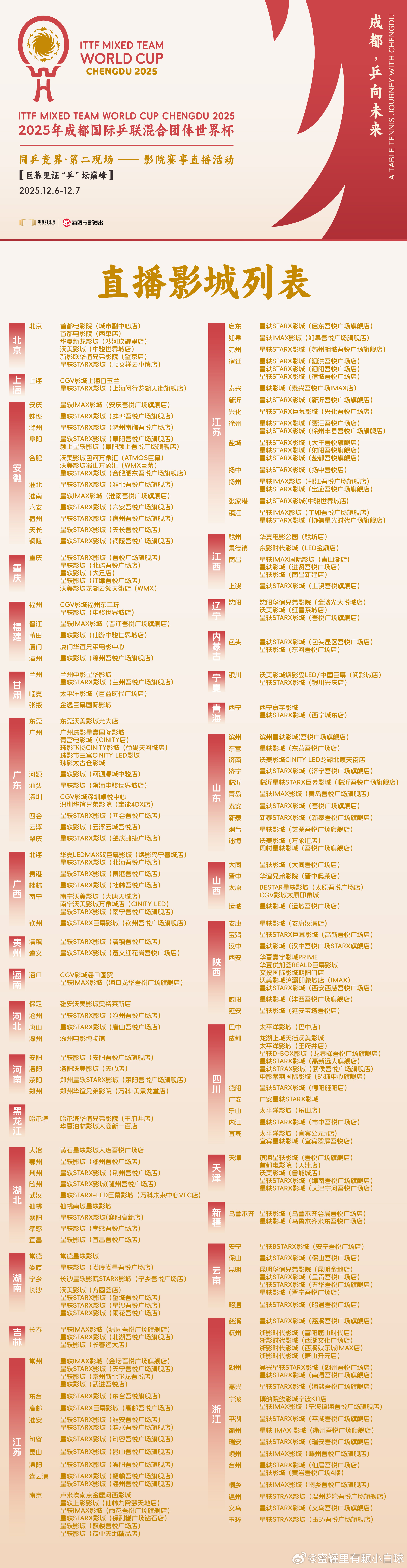 2025成都混团世界杯影城列表~看看有没有大家的城市