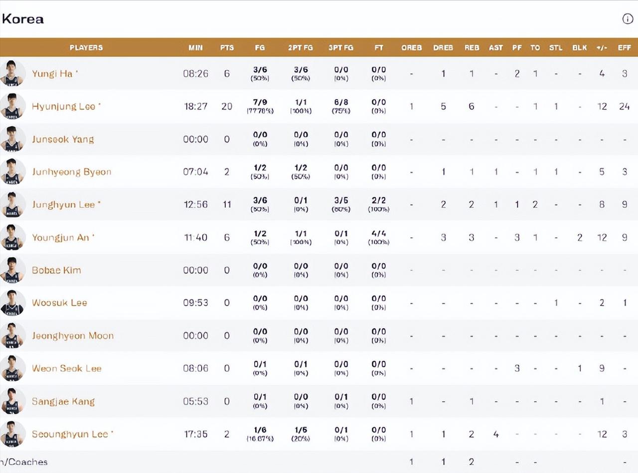 太可怕了,我们的篮球好像跟投篮没什么关系。 8中1的三分,嗯,这是中国男篮的上半场,其实不止三分,我们的2分投得更差,从朱俊龙到张公子,再到无人防守上篮都能打铁的高铁,简直让人不忍看。 看看对面韩国人,16中9的三分,上半场完全把我们投死了。 我只能说这个半场,中国男篮让我想起了不学无术这个词。