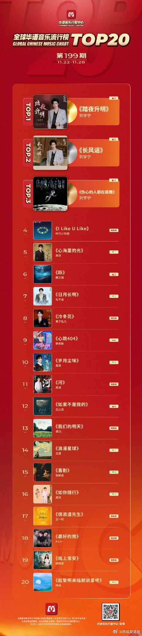 全球华语音乐流行榜,刘宇宁拿下榜单前三!🎉🎉🎉太强了,做什么都能做到最好
