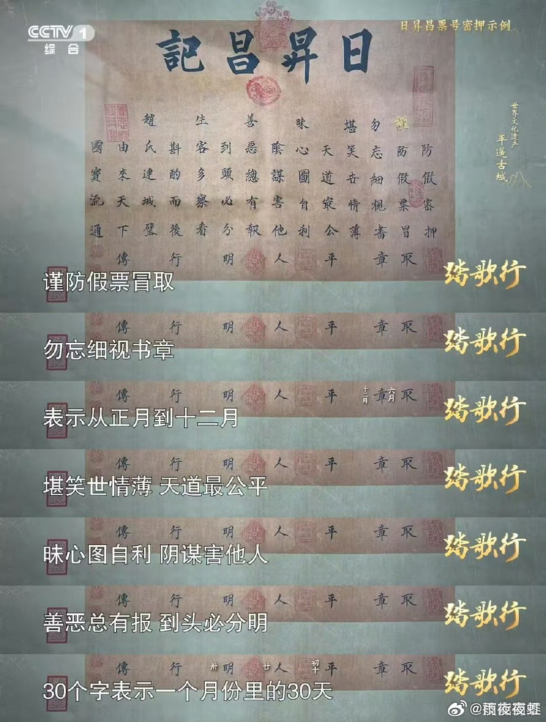 古人防伪先写一首诗古代银行的防伪密码像闯关票号堪称古代“银行”,其汇票防伪超厉害!字迹似专属签名全国备案更新,还有定期更换的密押,以汉字对应月与金额,古人智慧令人惊叹!踏歌行