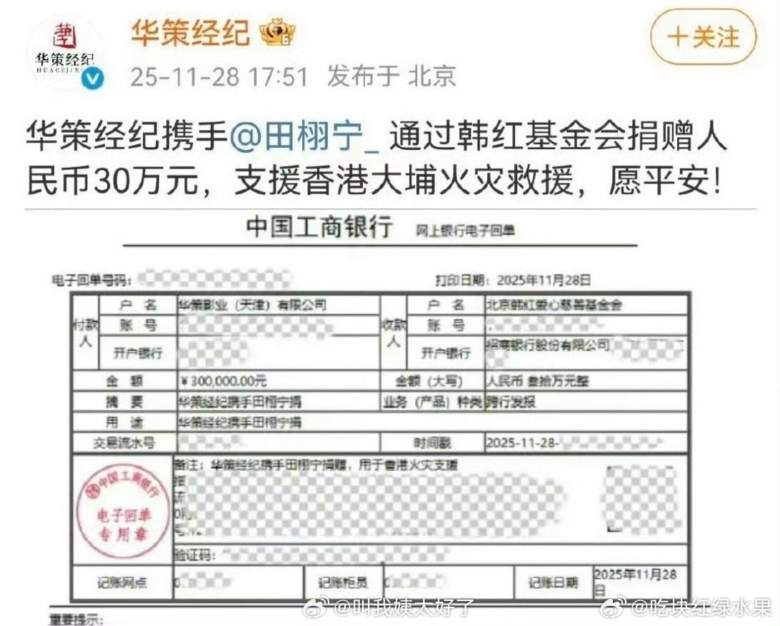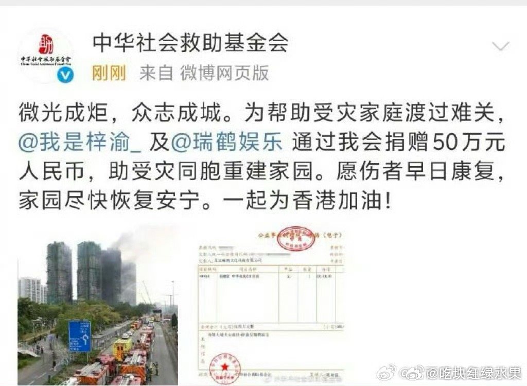 梓渝大粉号召其他粉丝为香港火灾捐款 好正能量啊香港捐款 栩你渝生后援会捐款
