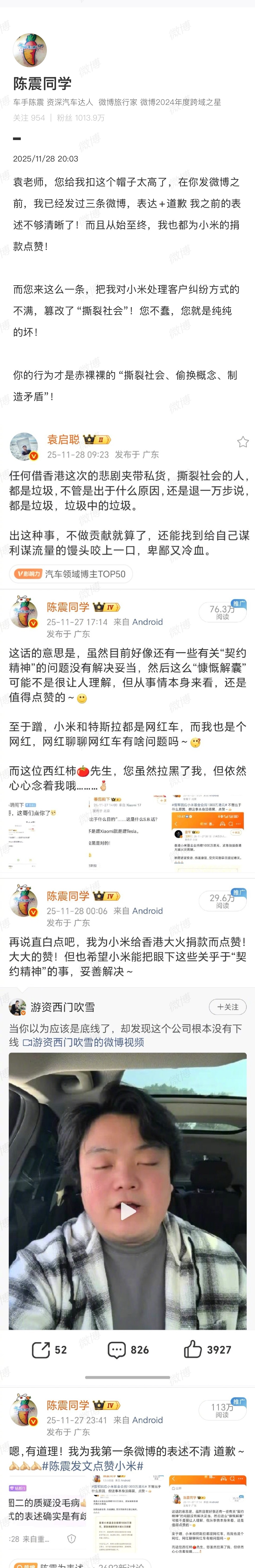小米捐了1000万港币的事,两位车圈大网红对骂起来了,在香港人民还在受苦受难的时刻,个人觉得无论如何都有点不合适