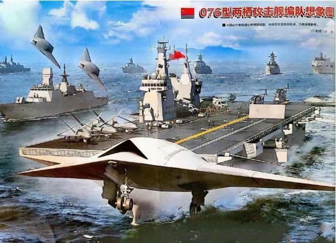 中国076两攻与法国戴高乐号同框对比! 官方报道,076满载排水量“4万余吨”,并搭载了跟“福建舰”航母上同款的电磁弹射和阻拦技术。 这意味着,076不仅能像传统两栖攻击舰那样,放飞直升机或短垂战机,更能以接近航母的效率弹射固定翼无人机。 毫不夸张的说,076在海空作战性能上已经不输很多航母,完全可以把076当成一艘中等航母来看。 正所谓,不是航母,但胜似航母!
