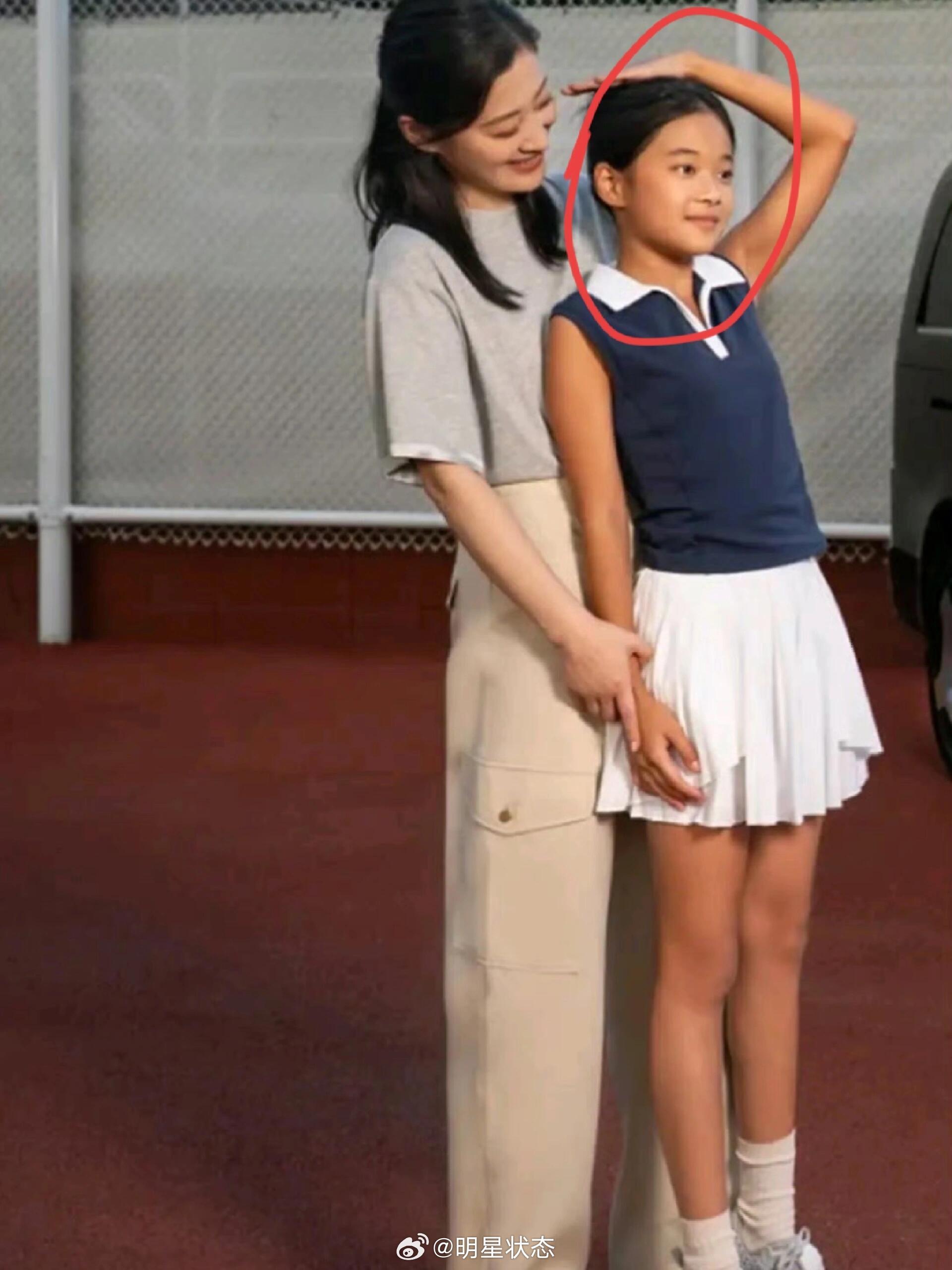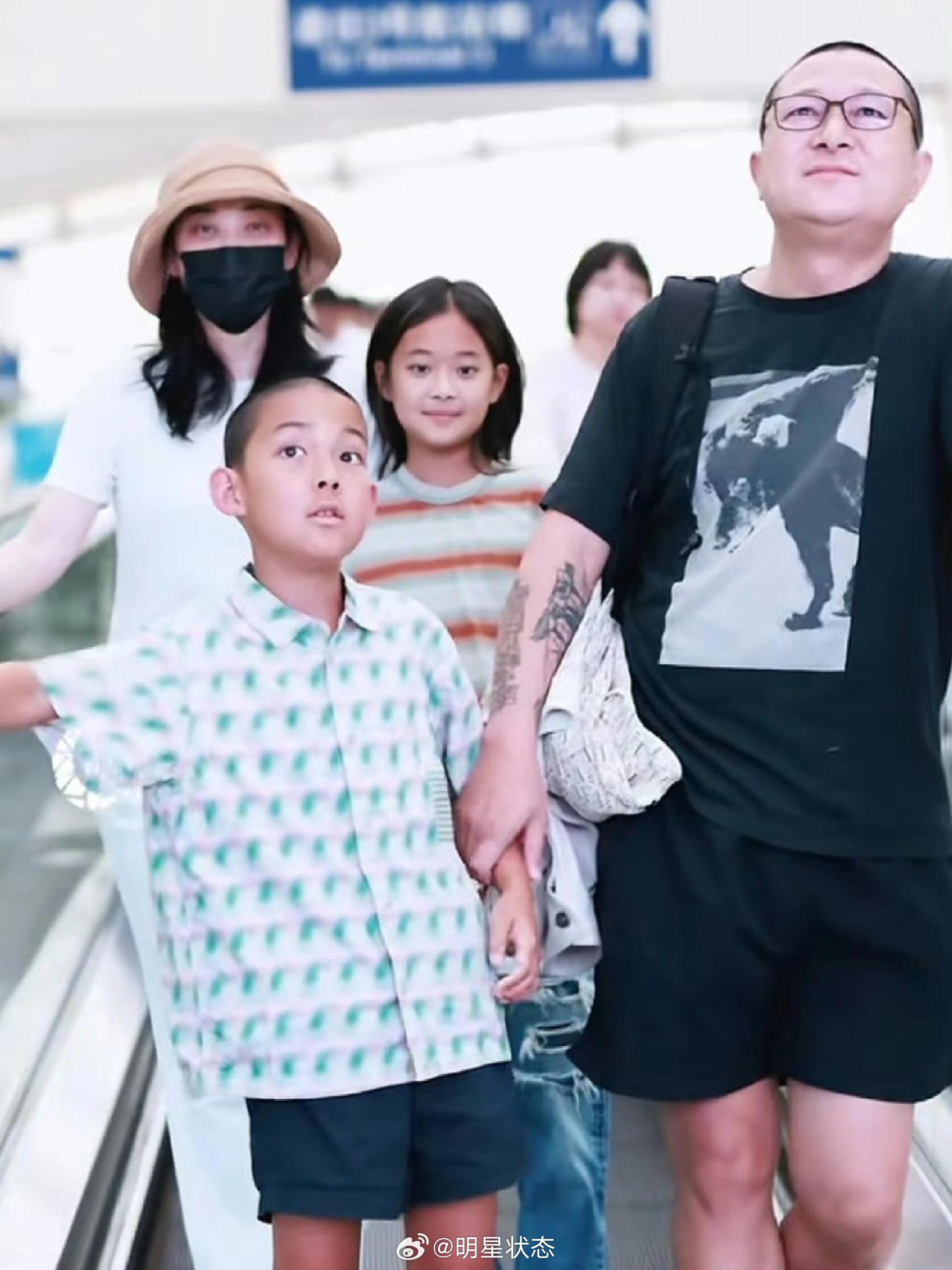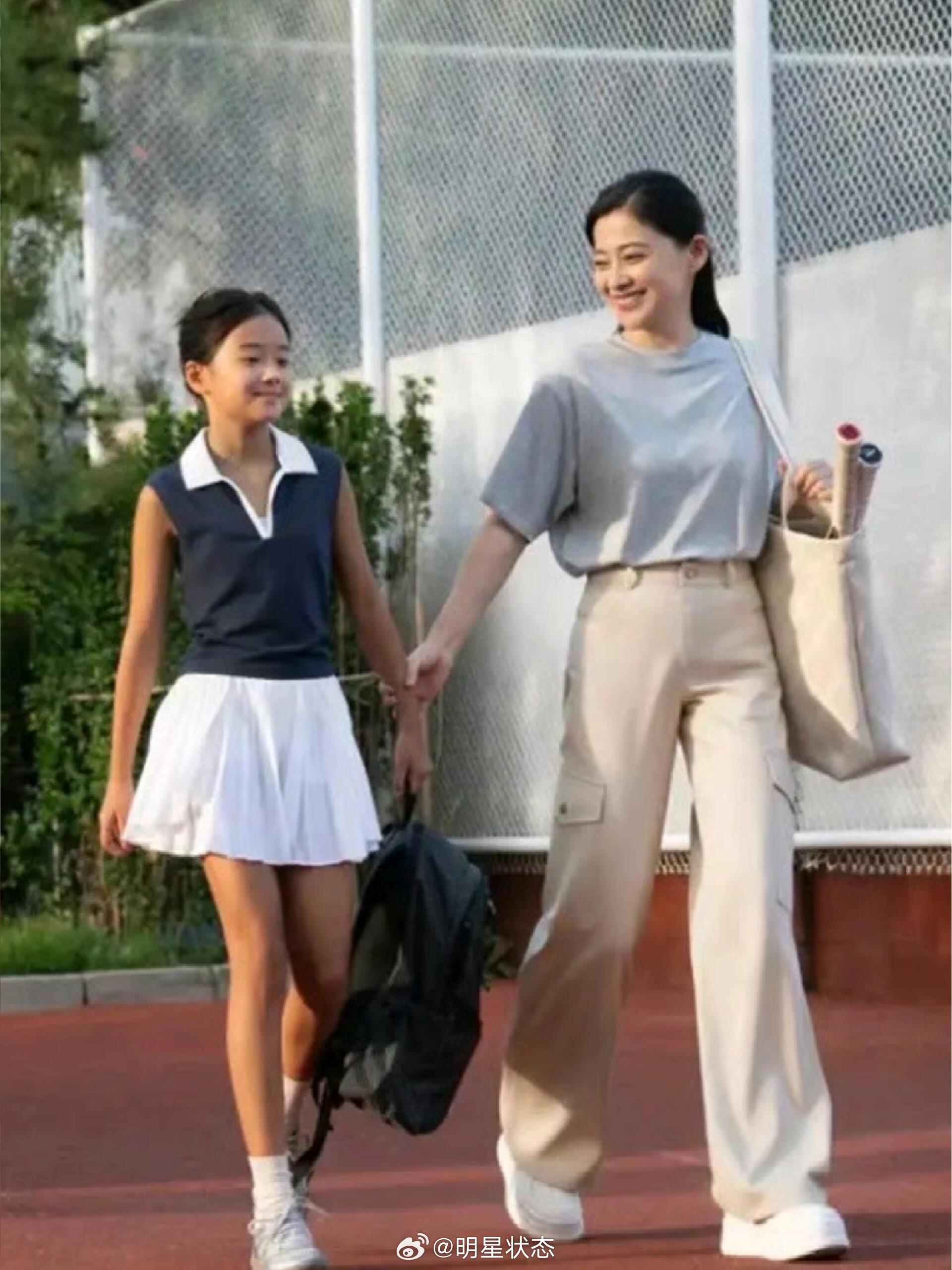 梅婷一家四口看网球,曾剑露大花臂面相好凶,12岁快快成妈妈翻版
