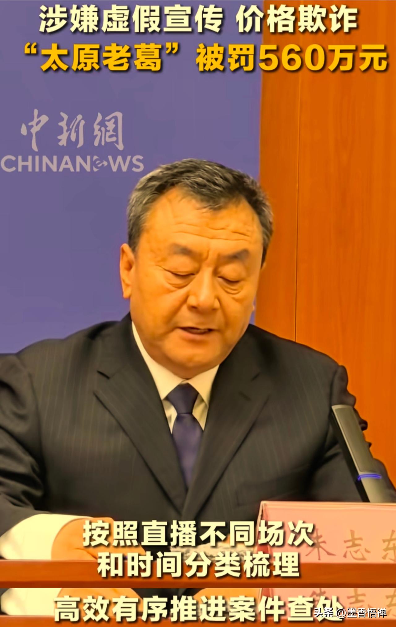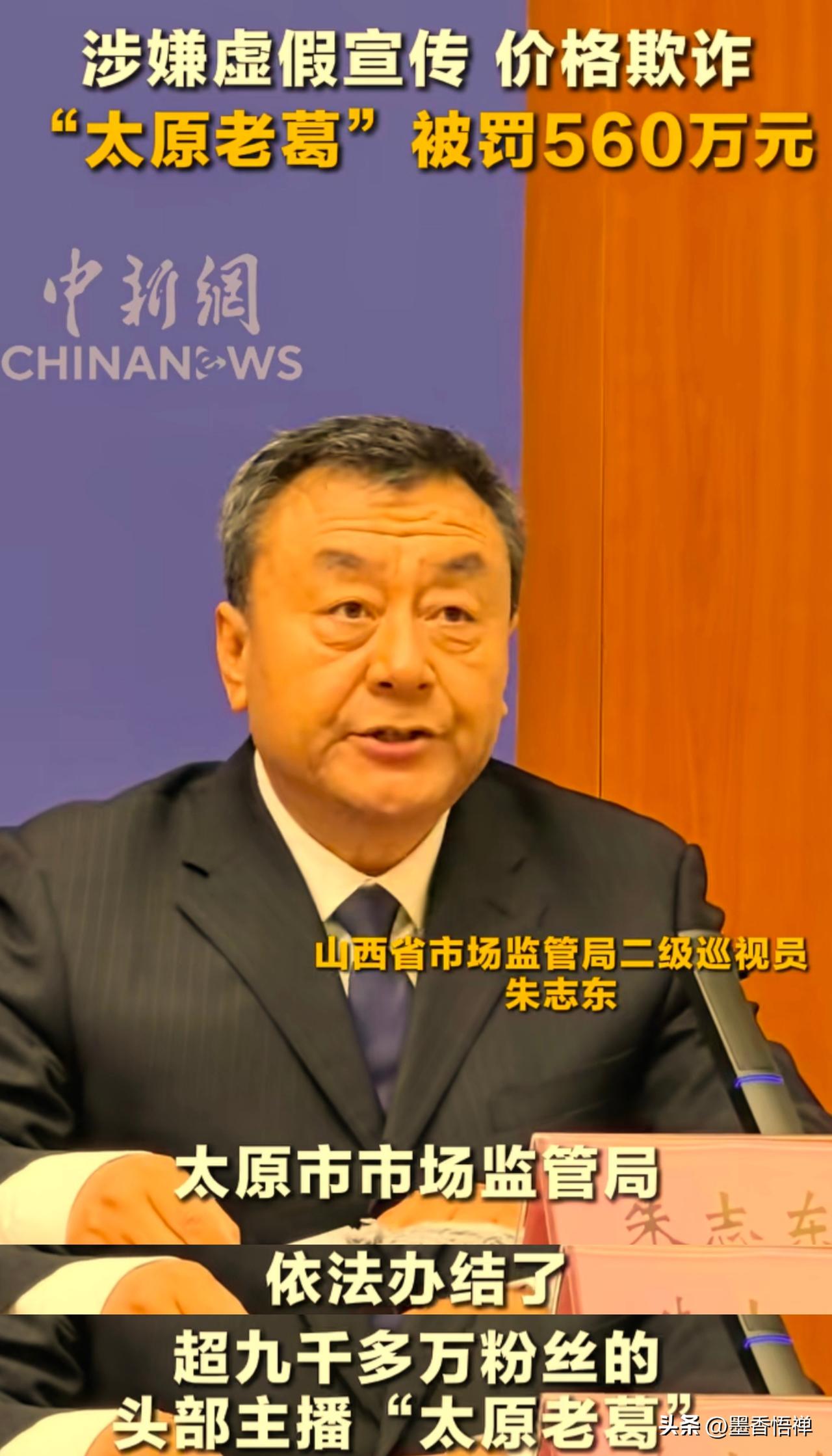 超900多万粉丝的网红头部主播“太原老葛”因涉嫌虚假宣传,价格欺诈,被市场监管局罚款560万元。 据中国新闻网报道,11月28日,市场监管总局召开了直播电商监督专题新闻发布会,根据市场监管部门的调查,“太原老葛”运营的公司,在2023年9月到2025年3月期间,存在以下违法行为: 涉嫌虚假宣传,在直播间营销“超声胶原炮”“细胞肌活冻龄因子液”熊胆粉、淡水珍珠吊坠等超过30多种商品时,使用无法证明和夸大宣传用语。 在直播中使用无法证明的价格和自己的商品价格进行比较,通过这种不合理的比价手段诱导消费者交易。 发布会发言人称,山西省市场监管局高度重视“太原老葛”网络消费舆情,第一时间对相关直播间开展了跟踪监测。 通过投诉举报、信息监测,多渠道挖掘汇集线索,按照直播不同场次和时间分类梳理,高效有序的推进了案件查处。 2025年8月,太原市市场监管局及小店区市场监管局对该公司做出行政处罚,责令其停止违法行为,给予警告,并累计罚款560万元。