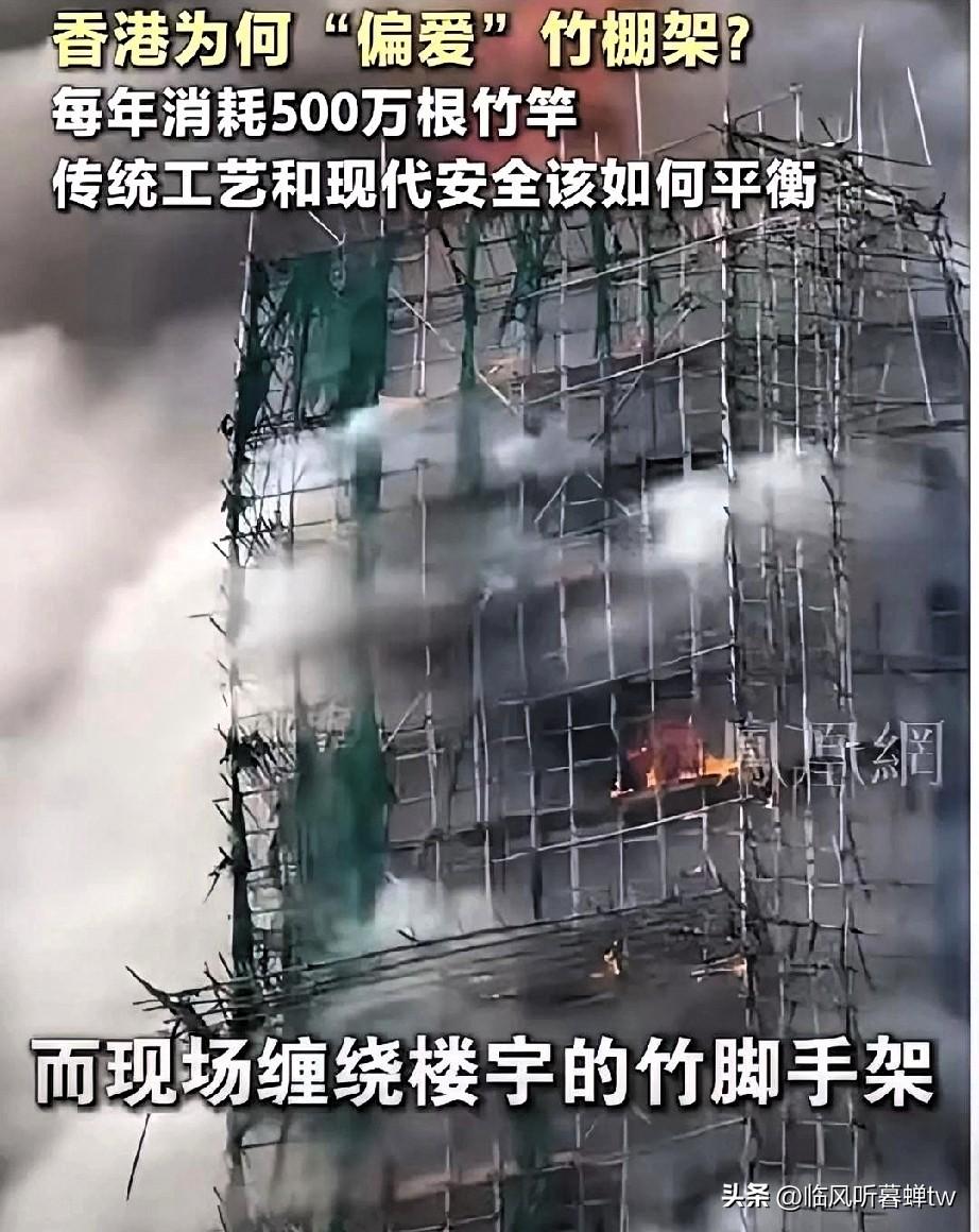 香港竹棚非遗技艺,可搭70层高楼,因火灾引发转型讨论! 2025年11月26日,香港新界大埔区宏福苑火灾,易燃防护网加剧火势,涉事建筑外墙竹棚引发安全争议。 香港竹棚是非遗技艺,日薪2200港元,可搭70层高楼,适配狭窄街巷,材料成本为金属架1/3,用完可直接处理。 竹棚工需持建筑业议会证书上岗,屋宇署有专门搭建规范,但部分项目违规使用非阻燃防护网埋下隐患。 火灾后政府宣布全面改用金属棚架,同步提供工人培训补贴,平衡安全与4000余名从业者生计。 九十年代广州已禁用竹脚手架,香港此次转型面临成本与传统传承难题,你认为该如何兼顾安全与非遗保护?
