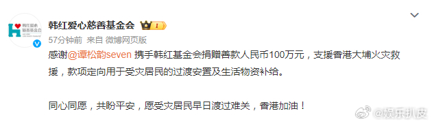谭松韵捐赠善款100万谭松韵捐赠善款100万,支援香港火灾救援,愿平安