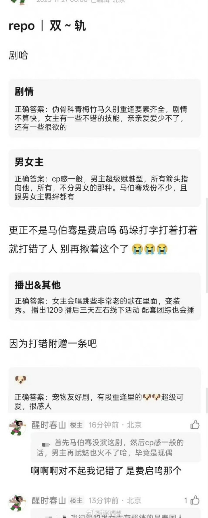 虞书欣,何与《双轨》repo,cp感一般,男主人设超级赋魅,偏向偶像剧俗套剧情这个repo感觉这剧一般呀,和我的期待好像不太一样