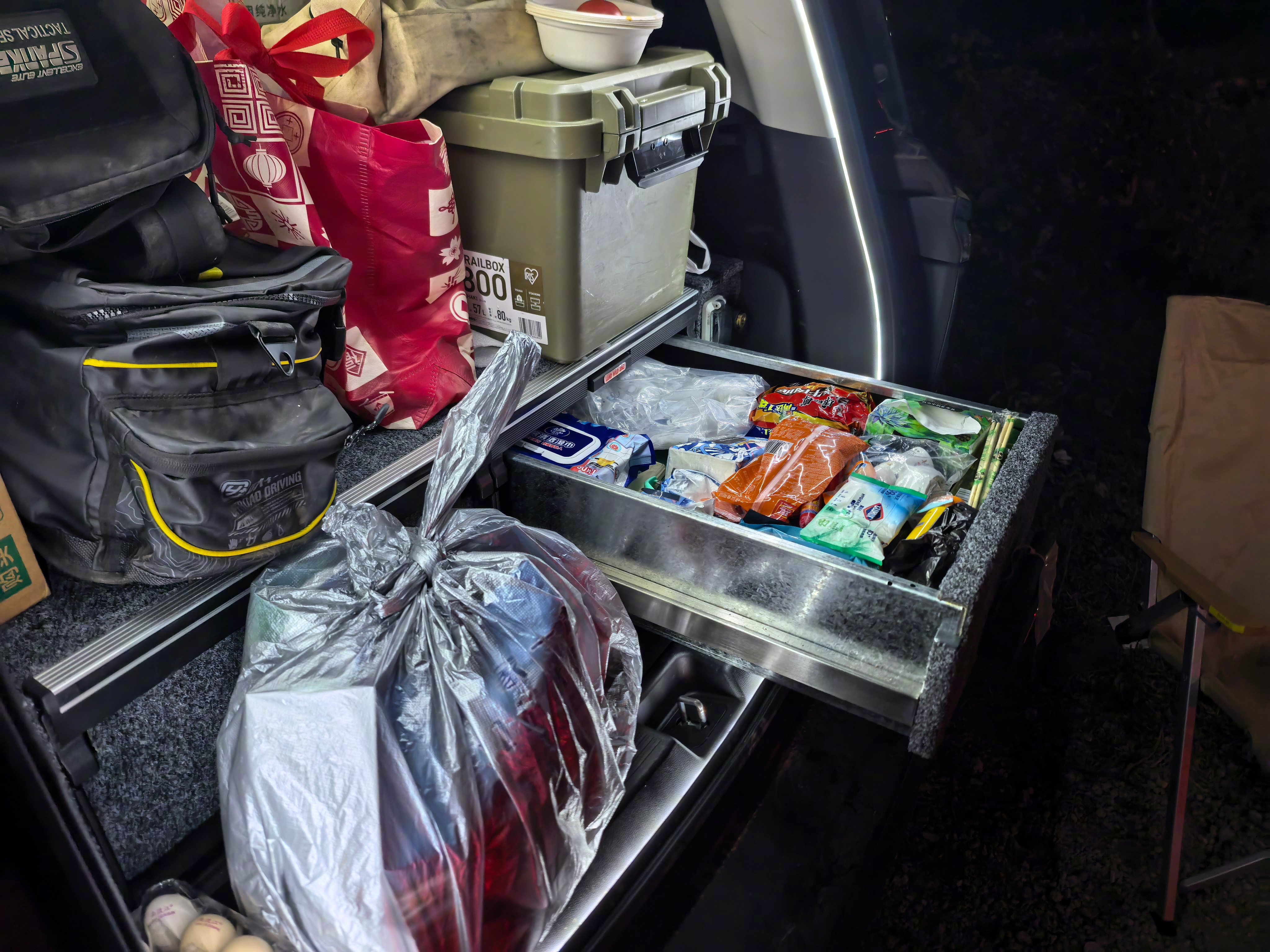 我们H5工作车,后货箱我要求他们把灯加亮,同事做的这个密封条内藏灯很好用,晚上大幅度提高工作效率。下层重载抽屉也很好用,把车货箱垂直高度利用的充分很多。这辆工作车已经在外地飘着4个月了,随着团队进巴基斯坦探路(失败),之后去了腾冲项目、横断山脉项目,如今来到了海南岛项目,真是辛苦。 货箱巨大,还密封,远比皮卡适合当工作车,也皮实耐操。