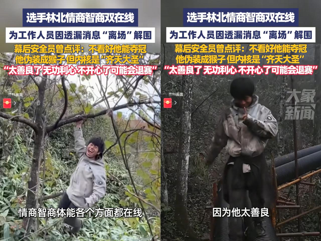 大家不用再猜了 林北“大概率要退赛了”! 他不仅开始摆烂了,还打算搬到距离大本营六个小时路程的山上住,就嫌山下人多打扰,想找个清静地儿! 而且都决赛第五天了,他还整天玩,不生火也不找食物,和半决赛时状态完全不一样! 感觉林北心里已经有了打算,估摸第一个十天就退赛。毕竟他说过想当旅游博主,估计不想为了拿冠军把身体搞垮,耽误自己想做的事! 看着林北这几天都生吃螃蟹,真的太心疼他了! 或许退赛是一种更好的选择吧! 你们咋看呢?觉得林北是不是真会退赛呀?