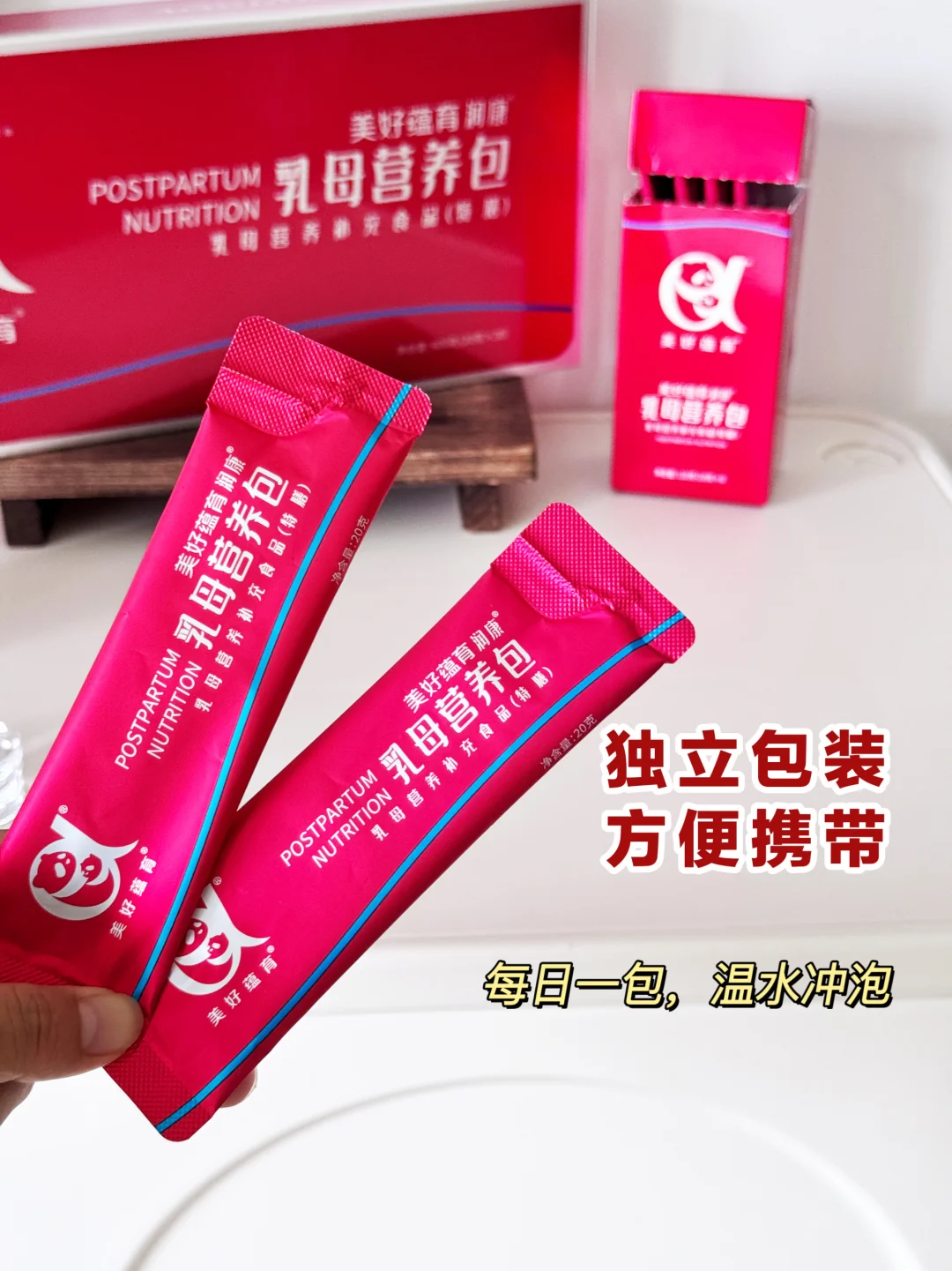 独立包装,冲泡方便,出去玩也可以随身携带,随时补充营养!关键饱腹感也很强,哺乳期能抵得上一顿加餐呢,真的是营养又方便,一人吃两人补!