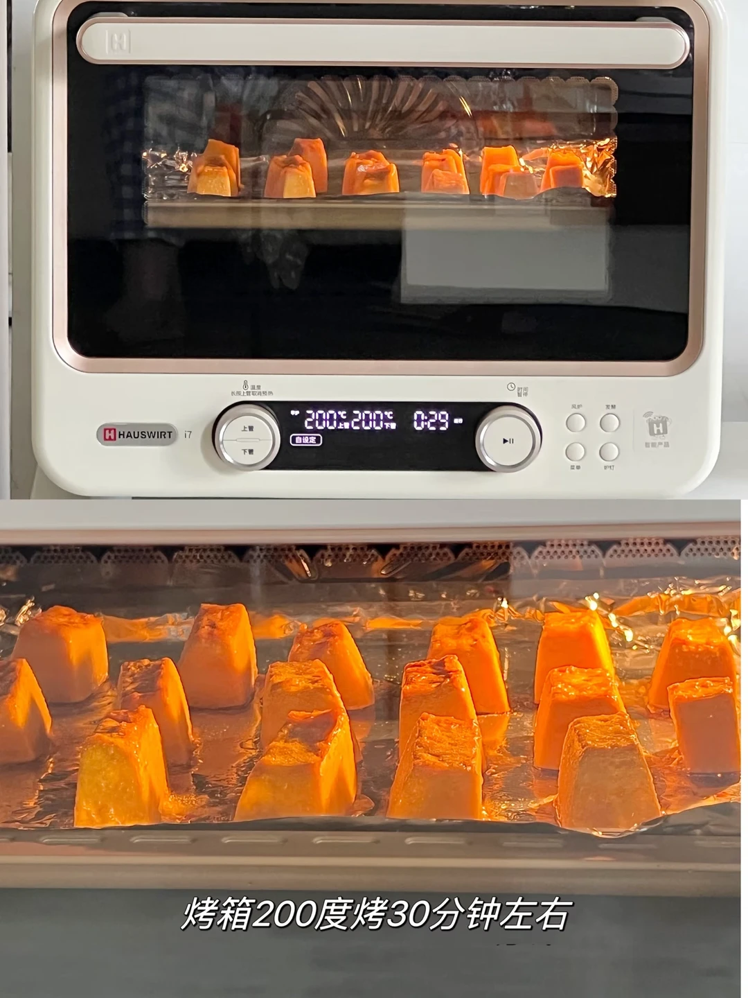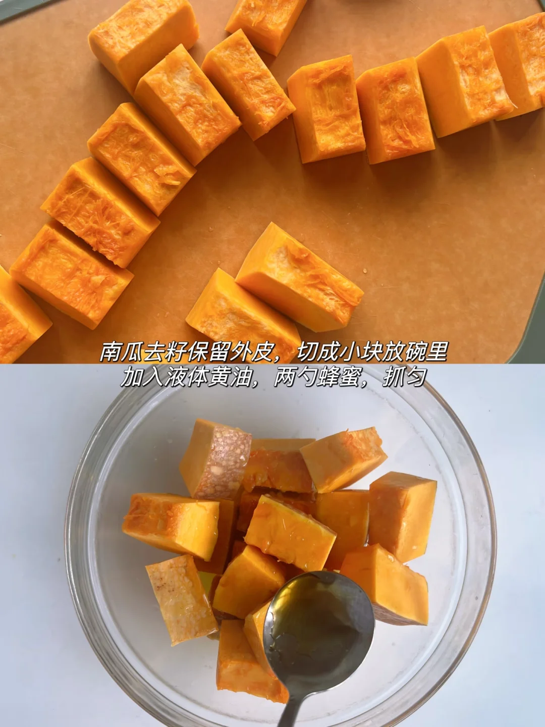 热气腾腾的三餐 没想到3块钱的老南瓜 加了点黄油和蜂蜜烤了吃 好吃到想哭呀[害羞R][害羞R] 口感清甜,不干不腻 没想到比beibei南瓜还好吃😋[点赞R][点赞R][点赞R] 👉 食材: 老南瓜1块 黄油、蜂蜜少许欧芹碎少许 步骤: 1️⃣黄油一小块用微波炉加热至融化 2️⃣南瓜洗干净去籽保留外皮,切成小块放碗里加入液体黄油,两勺蜂蜜,抓匀 3️⃣烤盘铺油纸或锡箔纸,码上南瓜,烤箱200度预热烤30分钟即可