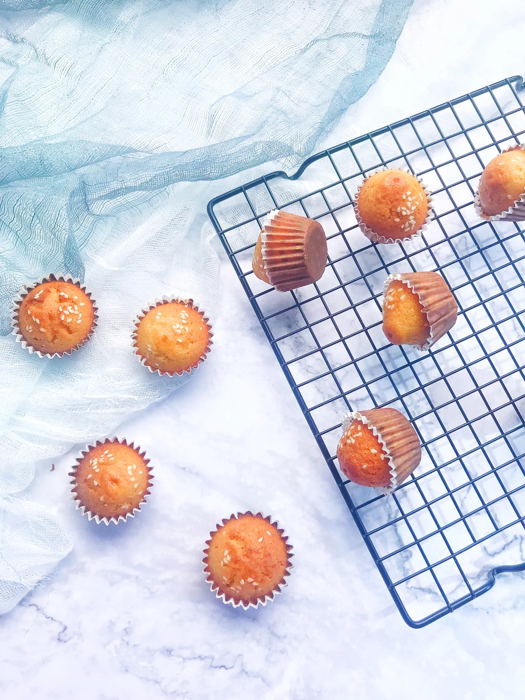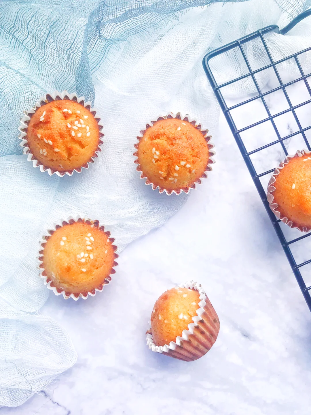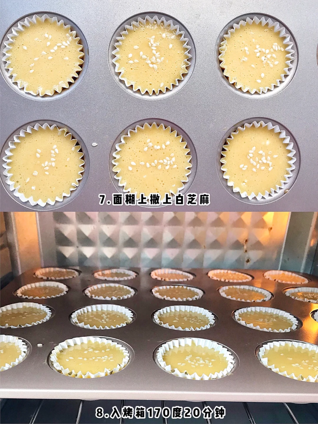 小时候的快乐特别简单, 只要妈妈去市场买了我爱吃的蛋糕🥧 我就能开心一整天 那个时候最火🔥的就是论斤称的蜂🍯蜜蛋糕 现在市面上已经很少了,但是我又超想吃 所以就自己做喽。 自己动手以后发现原来这么简单❗️ · 📝食材准备: 蜂蜜60g 细砂糖30g 鸡蛋3个 低筋面粉130g 泡打粉1g 玉米油45g 白芝麻适量 · 📝步骤: 1️⃣把鸡蛋打入无水无油的碗中,依次放入蜂蜜和细砂糖,用电动打蛋器高速打发至提前打蛋头,面糊画8字不会消失。(⚠️全程大概5分钟) 2️⃣筛入低筋面粉和泡打粉,用刮刀翻拌均匀,没有干粉的状态。 3️⃣倒入玉米油继续用刮刀翻拌均匀到完全融合,没有水油分离的样子。 4️⃣把面糊倒入纸杯里,大概8分满就够了,表面撒上白芝麻。放入烤箱170度20分钟。 · 🧚🏻‍♀️这个分量我是做了2️⃣份20连排的迷你小蛋糕,一口一个,蜂蜜味很浓,还混合着芝麻的香味,如果觉得鸡蛋味比较浓,受不了蛋腥,可以加几滴香草精,会很香哦~