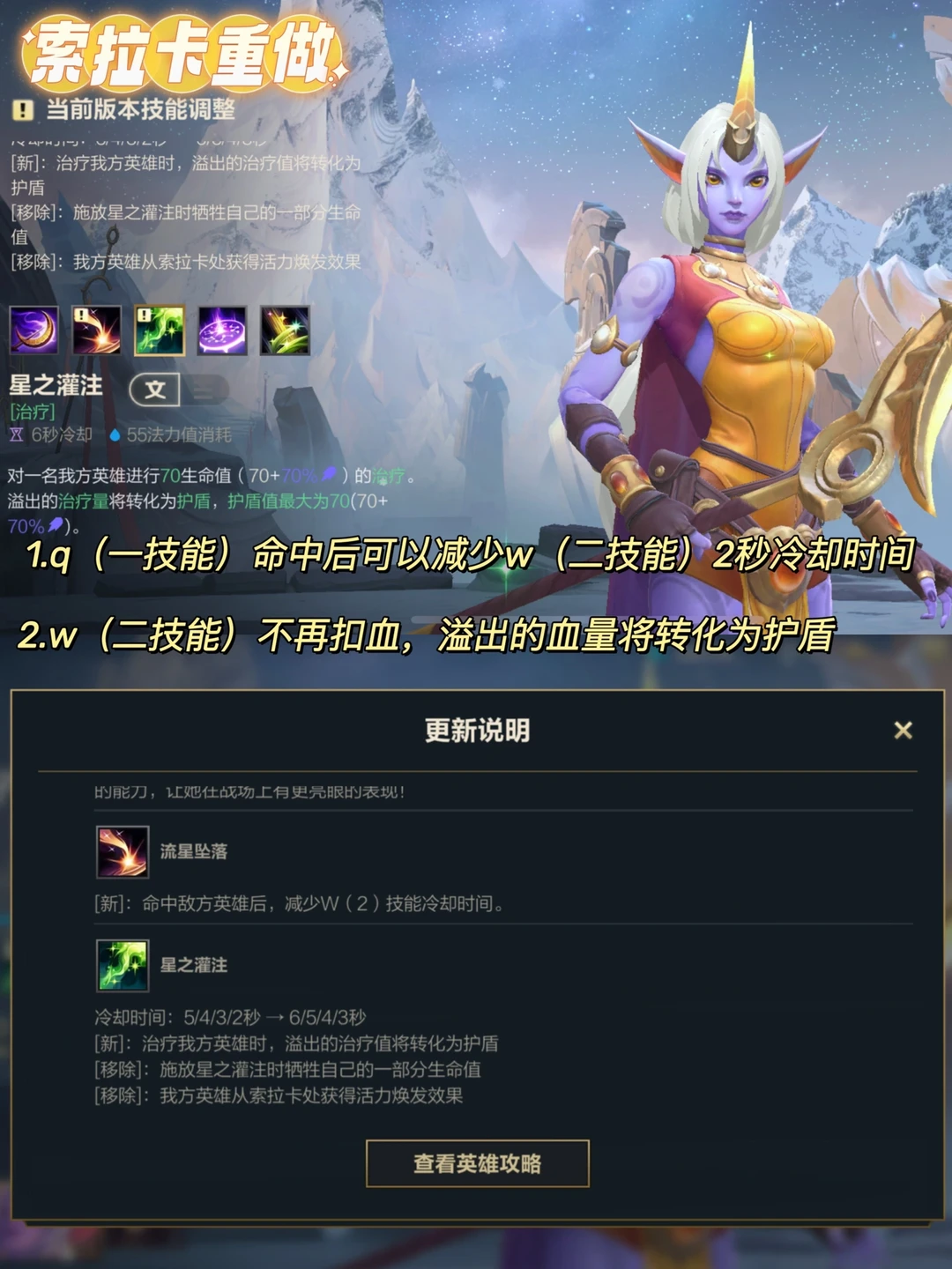 w(2技能)为队友回血时,不再减少自身血量,并且队友满血时,溢出部分化为护盾。