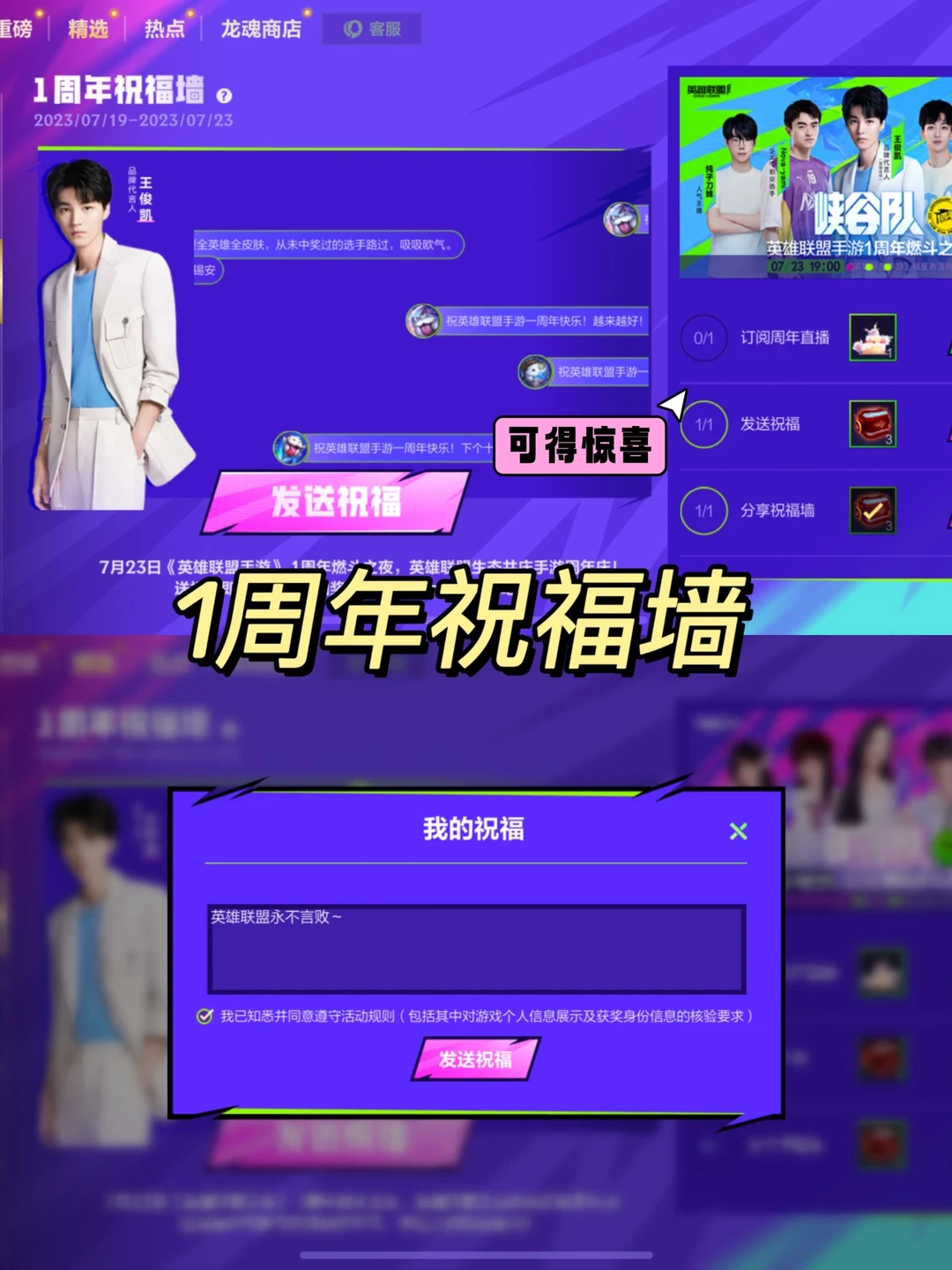 3️⃣1周年祝福墙送上祝福,可以参与庆典抽奖。