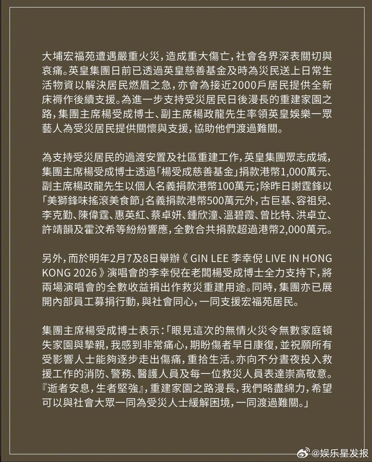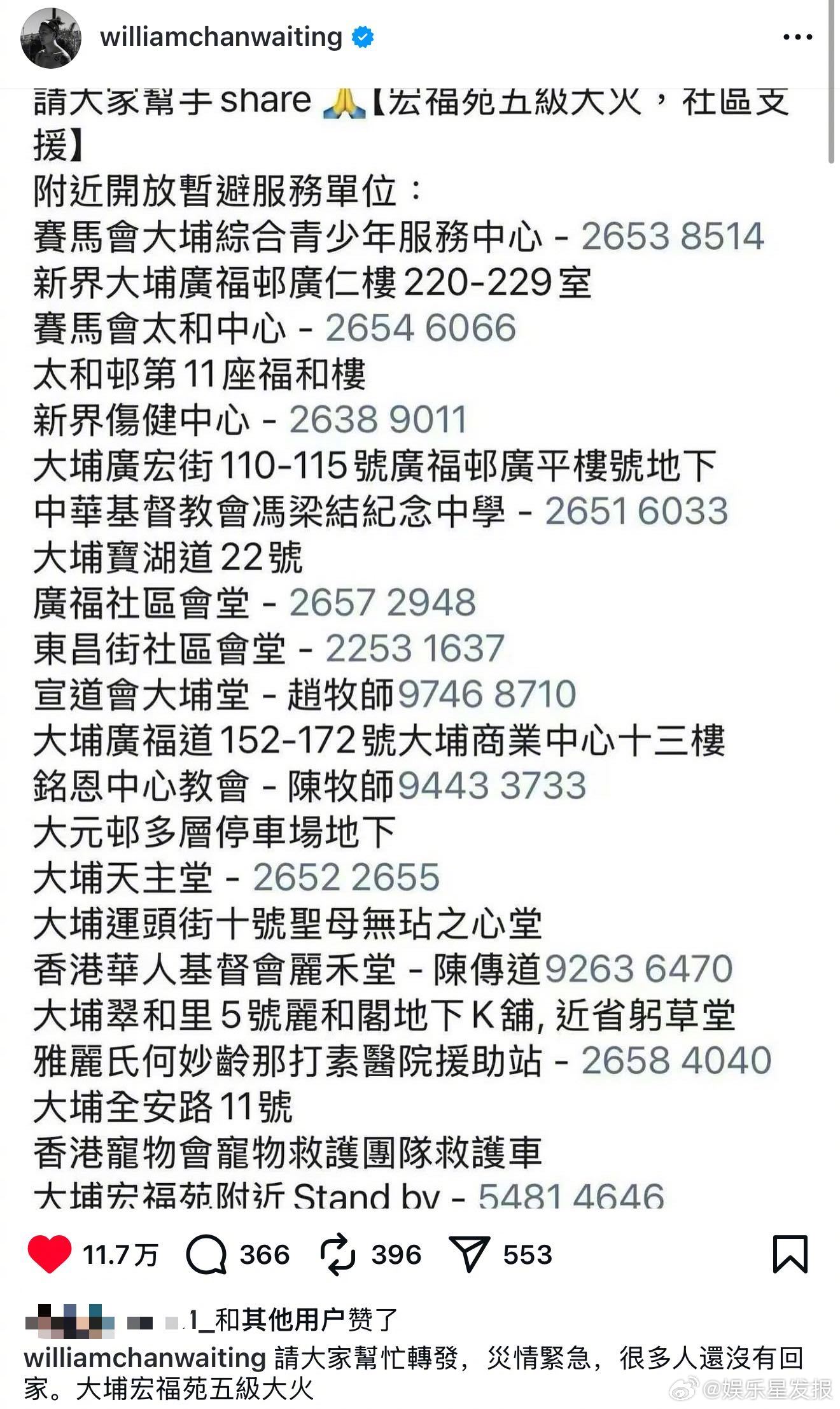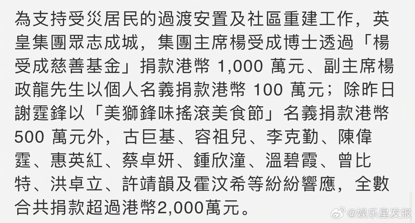 陈伟霆捐款100万元为香港大埔火灾事故捐款100万!果然是一直正能量满满的陈伟霆,希望受灾民众可以早日走出伤痛,盼平安。陈伟霆为香港火灾捐款100万