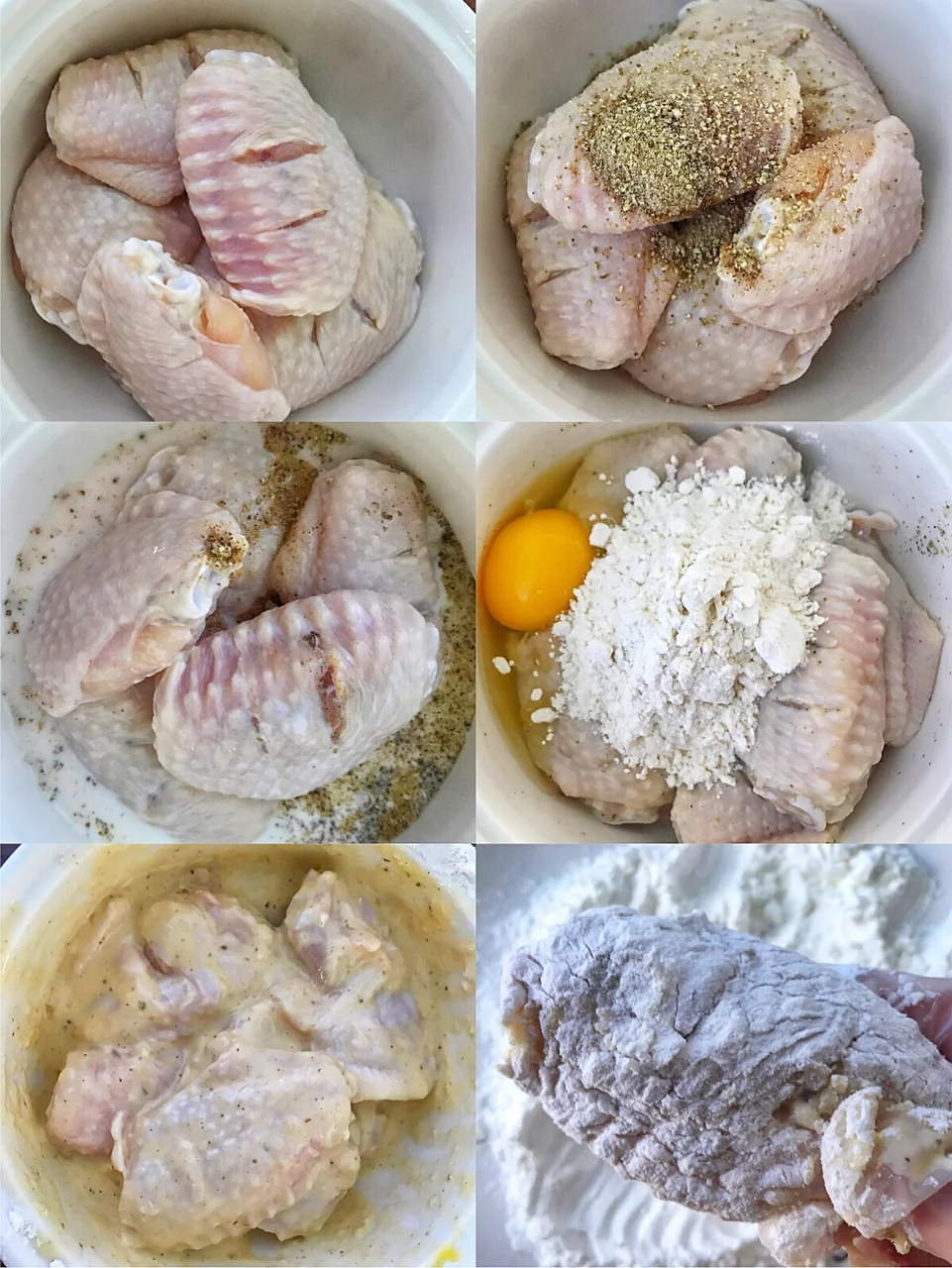 3️⃣鸡翅腌制好以后,沥出牛奶,打入一个鸡蛋和面粉,用手抓匀,裹上玉米淀粉。