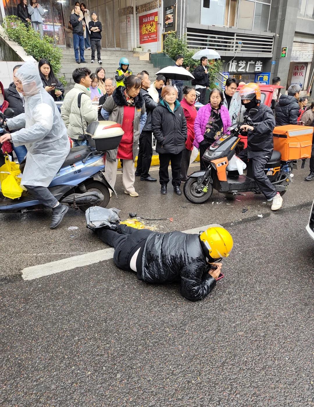 重庆观音桥银鑫楼门口发生车祸事件 重庆观音桥银鑫楼菜市场门口车祸 我也不知道是什么原因导致 谁的主责谁的次责 我也不知道 我也只是路过这里 看见有一位外卖小哥被撞到地上 但是外卖小哥他人没大事 可能脚有一点受伤 重庆 重庆都dou知道 观音桥 山城 北城天街