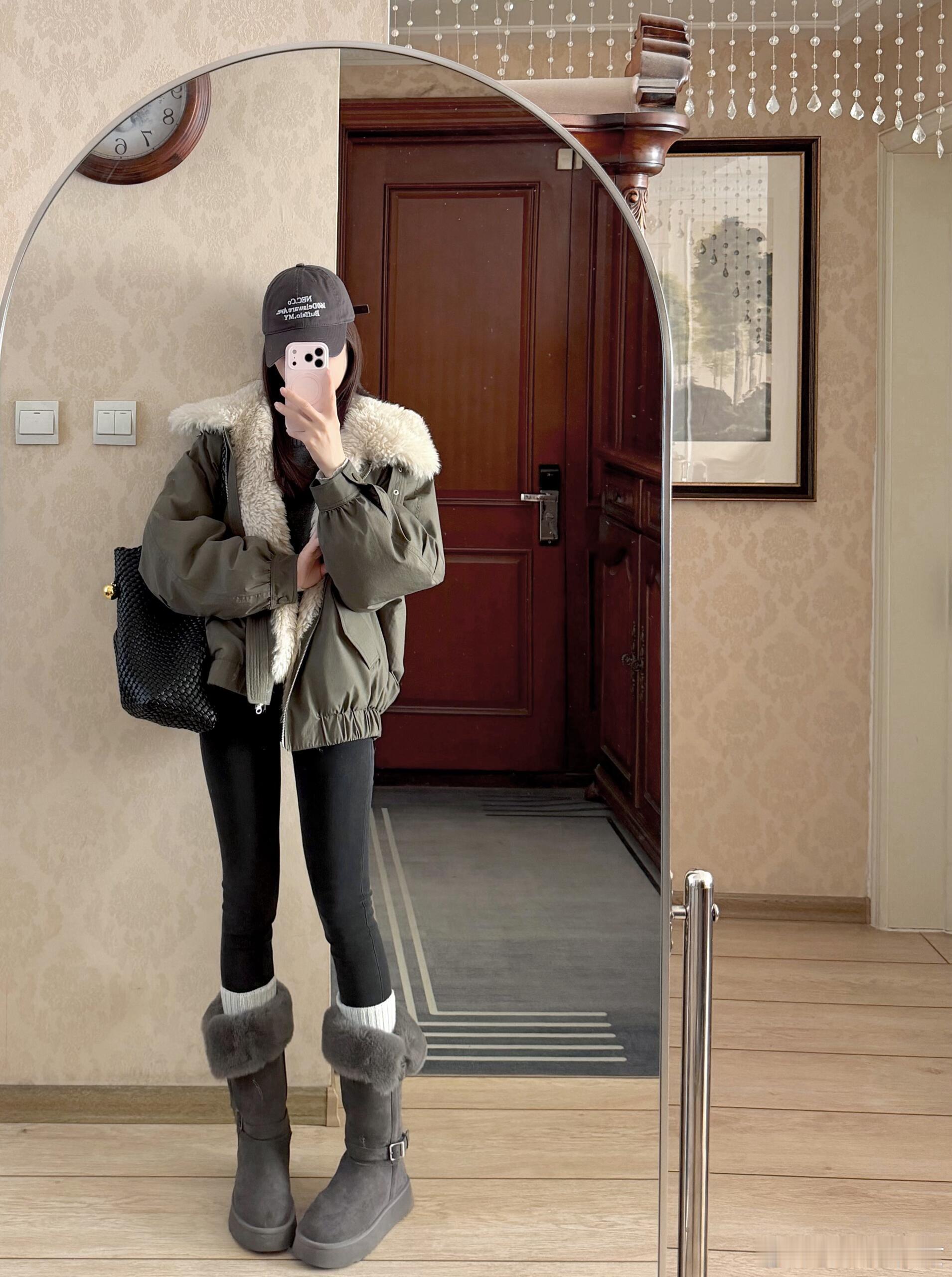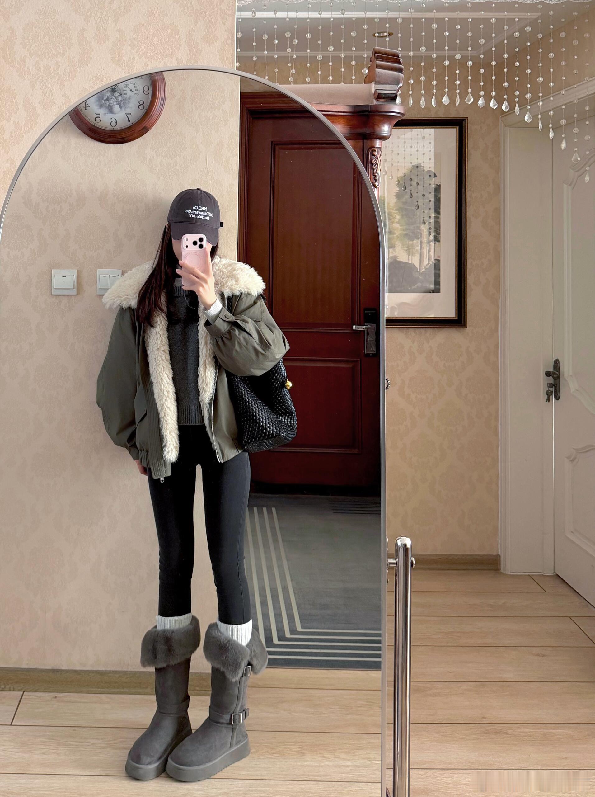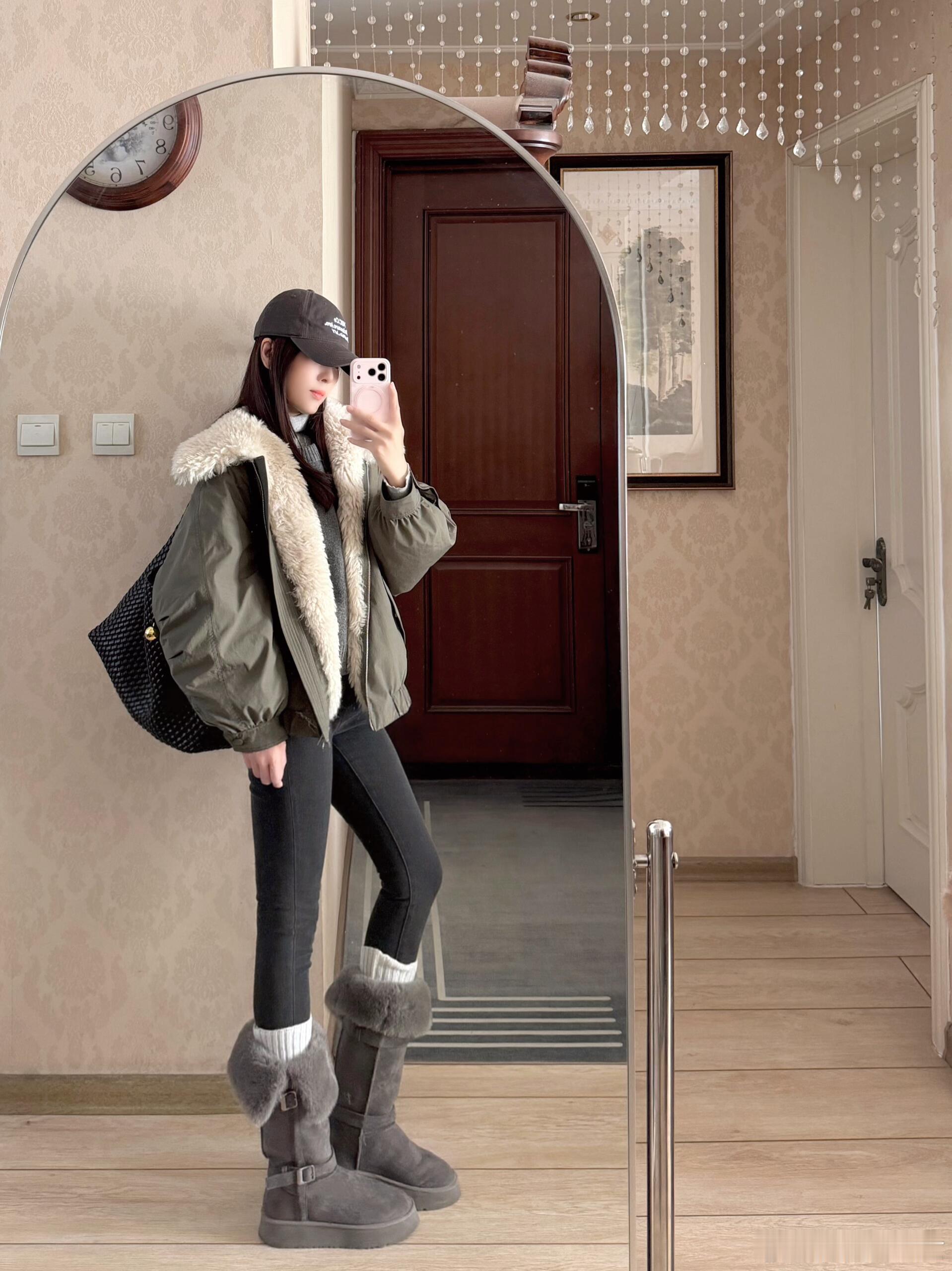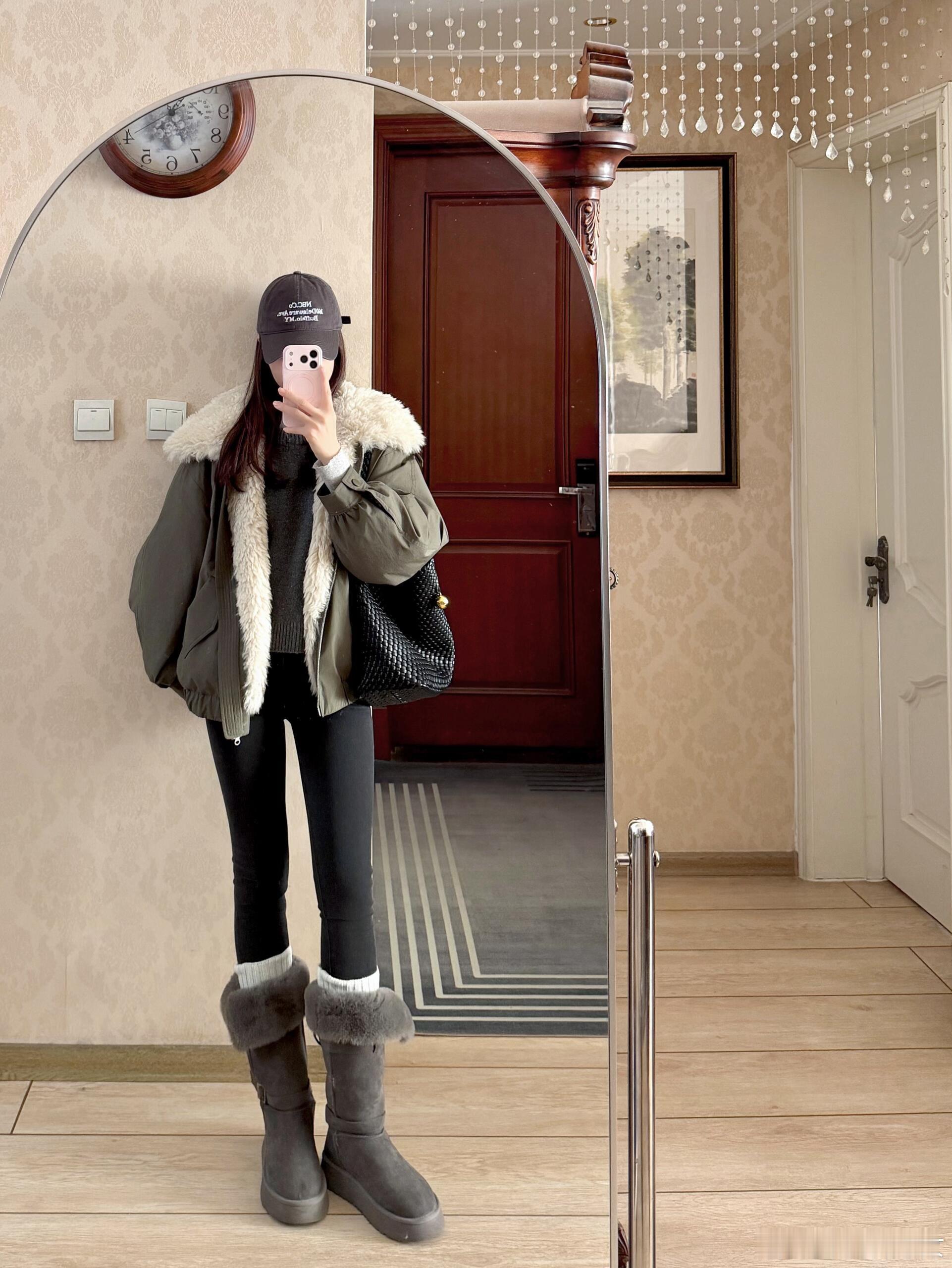 不定义穿搭如果秋冬有颜色秋冬酷飒松弛感穿搭!暖乎乎又利落的冬日模板~宝子们!这套秋冬Look把“帅气+软糯”焊在身上了!军绿配色+毛绒质感,日常出街舒服又有气场,必须拉你们一起抄作业~🧥【军绿毛绒领工装外套+深灰高领衫】这外套也太会拿捏冬日酷飒感了吧!军绿工装面料挺括有型,奶白毛绒领自带软糯氛围,宽松版型藏肉不臃肿,内搭深灰高领衫保暖又显层次,穿上就像裹了件“行走的帅气暖炉”,舒适与气场双拉满~👖【黑色紧身裤+白边堆堆袜】这组合是冬日“显瘦小心机”!黑色紧身裤利落贴腿,搭配白边堆堆袜增加软萌细节,既保暖又修饰腿型,和厚外套搭在一起“上宽下窄”超显瘦,甜酷平衡感直接拉满~👜【黑编织大容量托特包】实用党直接狂喜!编织纹理自带慵懒质感,超大容量能装下随身物品,单肩背随性又大气,和整套酷飒风适配度满分,让造型好看又实用~👟【灰毛绒厚底长靴】舒适感天花板!灰调毛绒靴口软乎乎不磨腿,厚底鞋型显高又保暖,上脚软弹不累脚,搭配紧身裤露出堆堆袜边更显松弛,随性中透着帅气~🧢【深灰棒球帽】点睛之笔来啦!深灰棒球帽中和了外套的软糯感,增加了酷飒氛围,帽型修饰头型还能遮素颜,和整套穿搭色调和谐,冬日懒人出街必备神器!💡【穿搭小心机】“硬+软”材质碰撞超有层次!工装外套的挺括+毛绒领的软糯+紧身裤的利落,用堆堆袜和棒球帽平衡风格,既和谐又有记忆点。宽松外套+修身下装的“上宽下窄”法则,显瘦不拖沓,不管是日常通勤还是休闲出街,都能轻松穿出酷飒松弛感~这套穿搭把帅气和软糯平衡得刚刚好!穿上它,冬日出街都像走酷飒画报,随性精髓轻松拿捏~