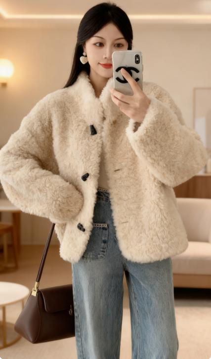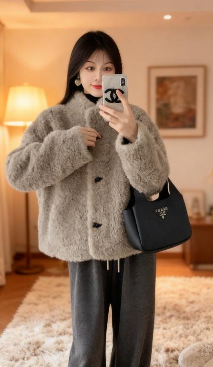 仿貂绒羊羔毛毛绒外套女 秋冬穿搭分享