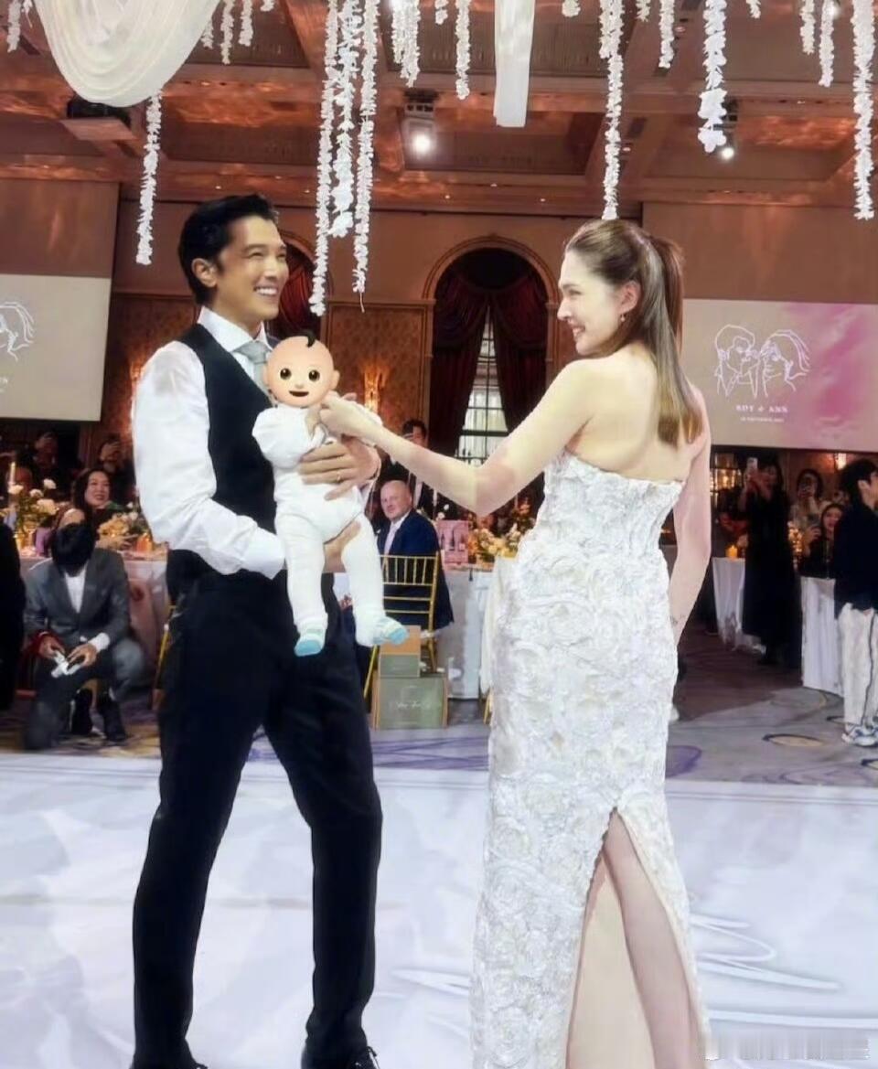 邱泽许玮甯的儿子也在婚礼现场,等等,怎么看到后面有个男的在跪着李靓蕾现身邱泽许玮甯婚礼