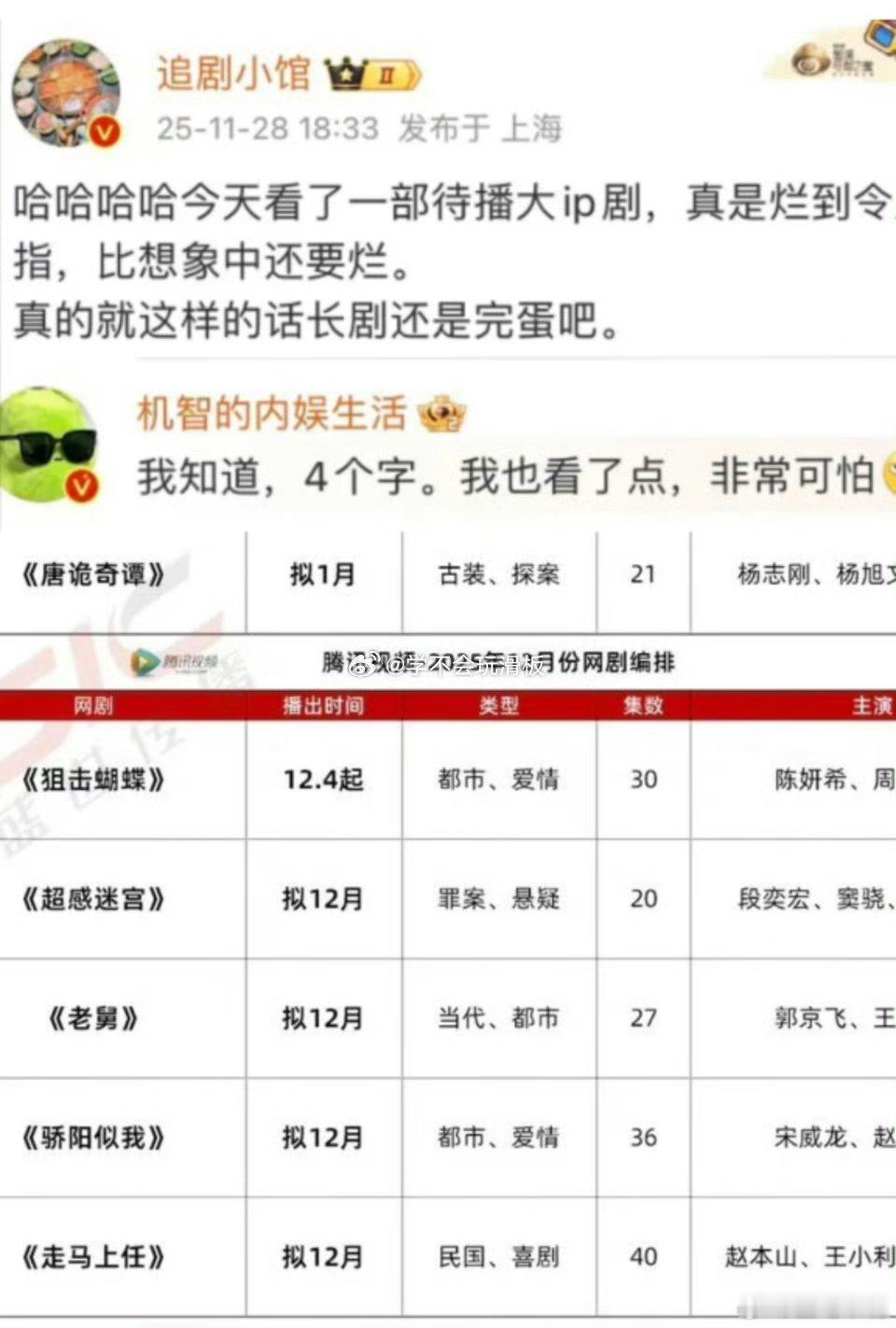 瓜主说12月待播剧有几部烂剧