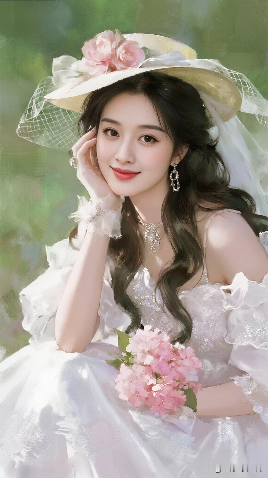 花间美人笑,春风满面来。什么样的穿搭可以成为气质女神? 梦幻花海中的优雅少女,粉色花束与白色礼服相映成趣,尽显浪漫与甜美。