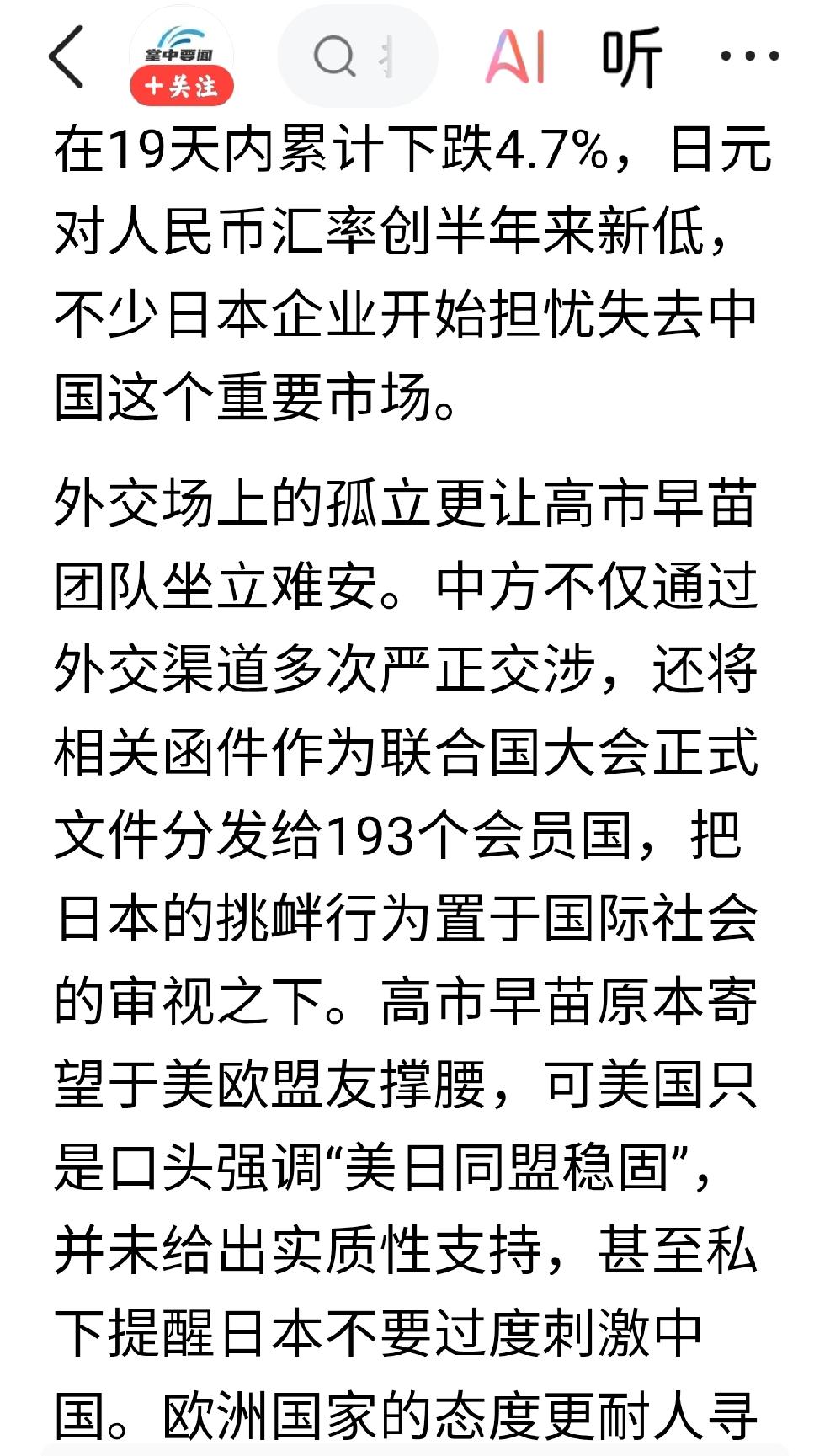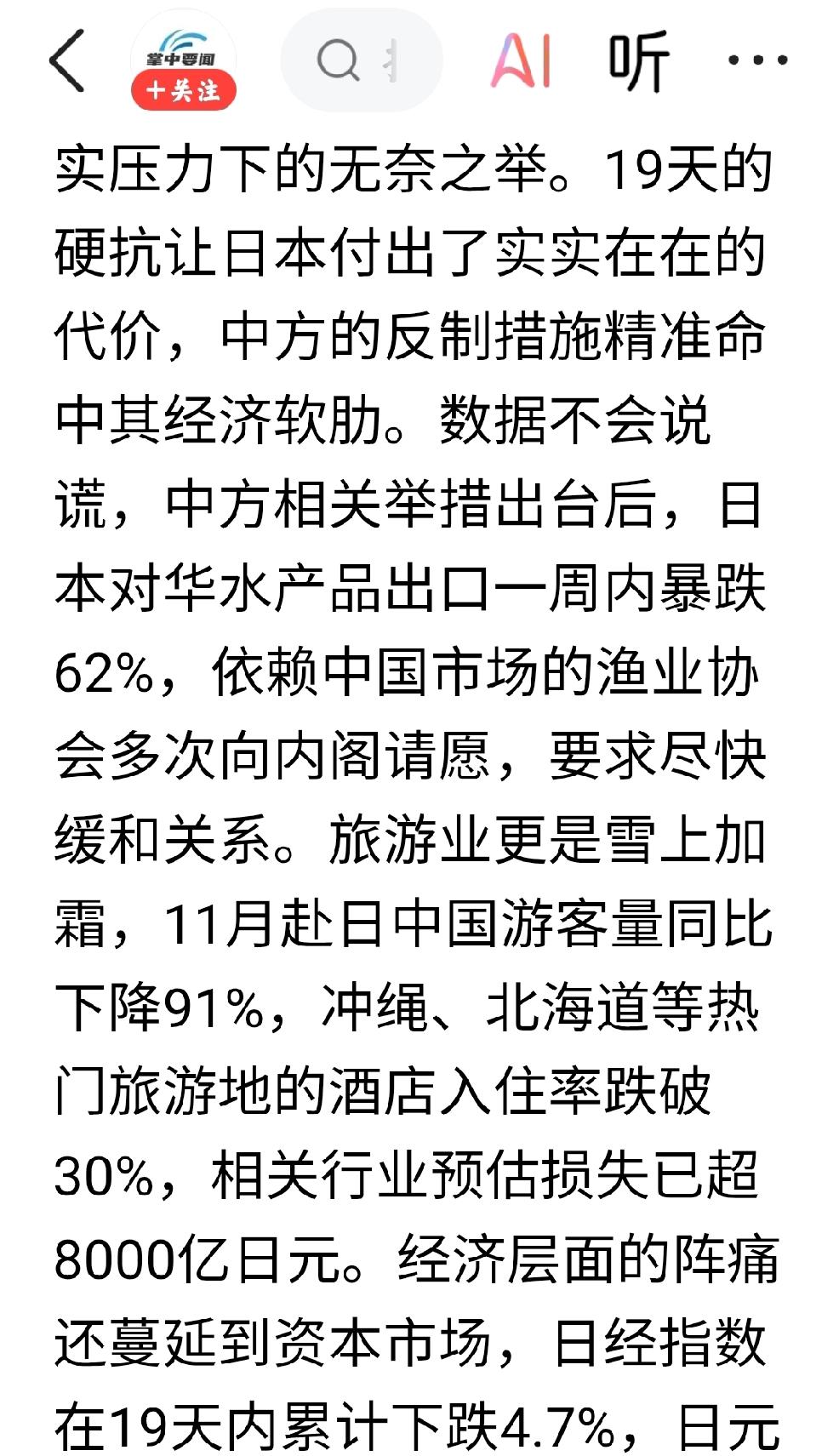 为什么日本慌了? 个人观点:那是因为影响日本金主们赚钱了,这些金主们面露恐慌,给这些职业政客压力。日本当前领导层蓄意犯错,故意挑拨,预谋已久,践踏红线。 继续高温高压反制日本,并且还要加深加宽,多种多样,反制手段,迭代更新的反制日本。 当下中国代表已在国际原子能机构发表中方态度要求彻查日本核问题。 中方代表已在联合国会议中表态,日本遗留的化学武器已经造成重大影响,要求日方妥善处理。 中国表态,希望琉球民众不要受到伤害,这些原住民的人权生存权主权问题,需要得到国际社会的关注与支持,坚持国际正义,解决琉球民众从始至终,无法改变的主权问题。
