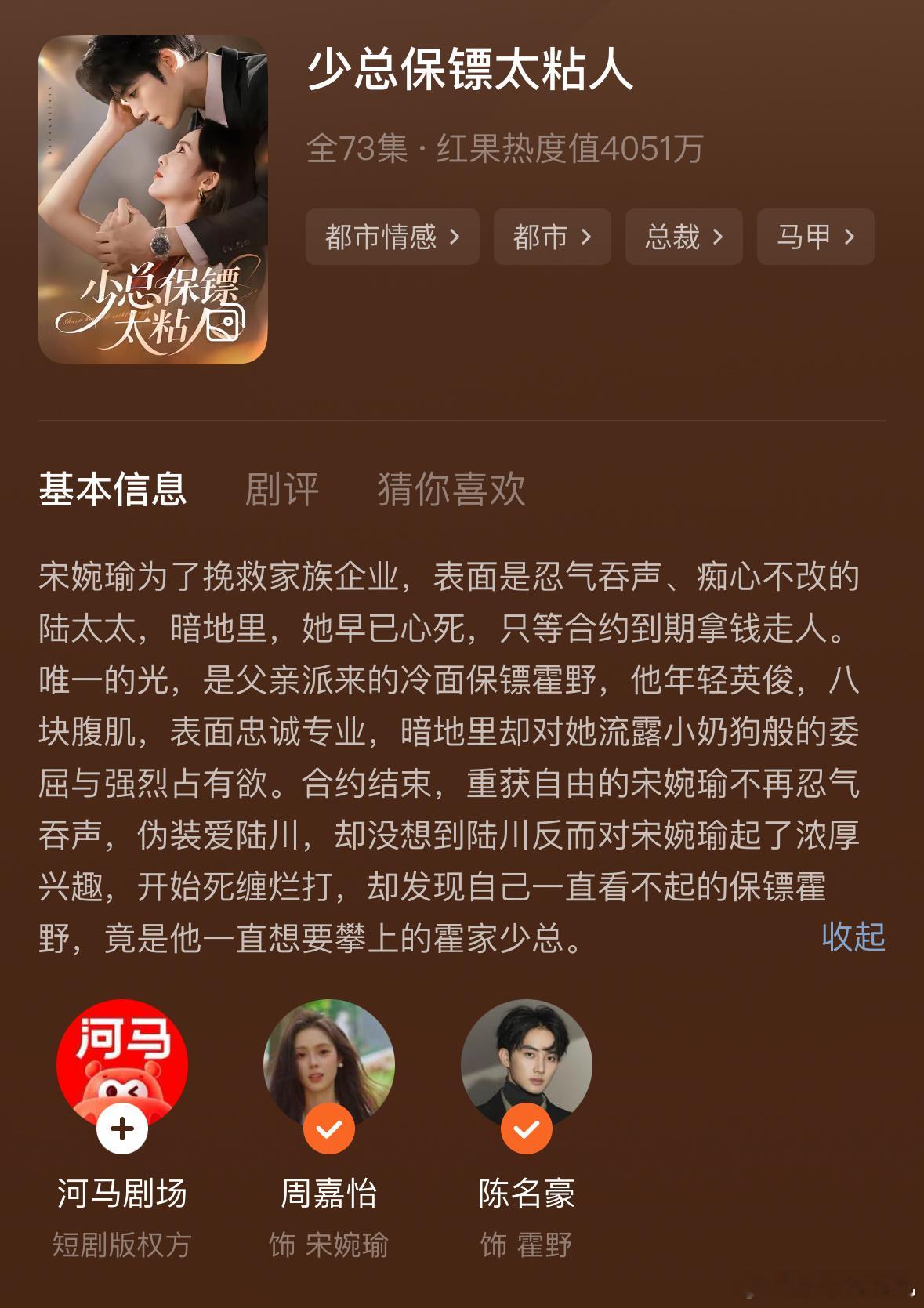 周嘉怡能不能接点好本子啊这剧真的太扯了……情节离谱男二女二俩智障角色戏份占了将近一半,和陈名豪还一点cp感也没有,明明男帅女美也是不懂为啥让人看着心如止水毫无波澜……可能是因为真的太降智了男女主都演不进去了……我到底是靠什么看完了一整部……