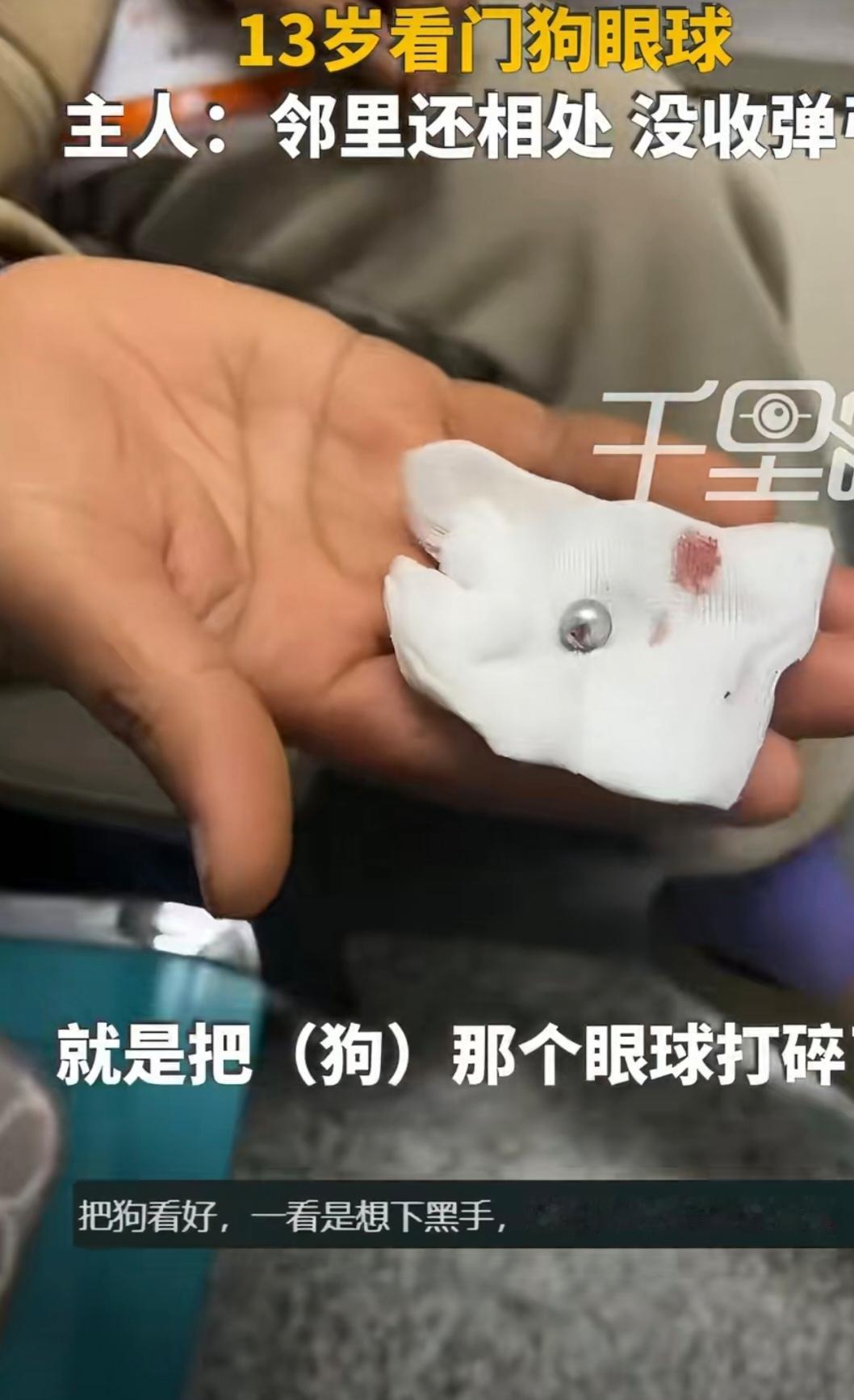 一把年纪跟13岁老狗过不去,用弹弓把狗眼球打碎,钢珠从眼窝打进鼻腔。事发辽宁丹东,老话说的好,打狗还得看主人。邻邻居居住着,平时还没少帮忙,怎么就和看见老狗过意不去。 是弹弓打的准还是歪打正着,钢珠从眼窝打进鼻腔 ,做手术取出来了。邻居还得处,把弹弓没收,也没追究别的,就是老狗遭罪了。 你这是作孽,13岁老狗属于高龄了,看你也不是小孩,怎么就和狗狗过不去,影响你什么啦?这样的人还是少来往。