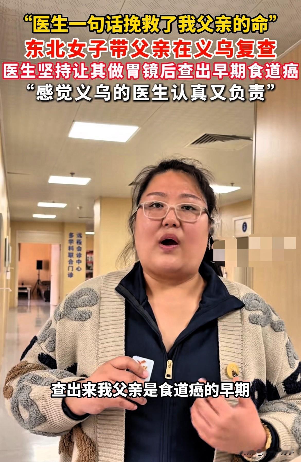 这才是救命恩人啊!浙江义乌,女子带老父亲去医院做肠镜检查,然而医生了解情况后,非要让老人做个胃镜检查,万万没想到,就是因为这次检查出彻底救了老人! 来到医院后,医生耐心检查后,询问老人:“你喜不喜欢吃热的东西?” “喜欢啊,我每天都喝热茶!”老人回答到。 随后医生就建议做个胃镜检查,结果查出老人食道癌早期,如果发现的再晚点,就扩散了,真是万幸啊! 不得不说,真是万幸啊,碰到了一个好医生,对患者认证负责,真是医者仁心,值得每一位医务工作者学习! 这件事也提醒我们,平时也要注意饮食卫生,尽量别吃太烫的,饮食要规律,不要暴饮暴食,毕竟有一个好身体比什么都重要! 大家觉得呢?(中国义乌网)