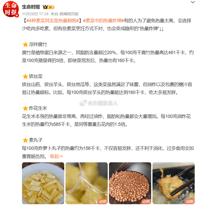 4种素菜其实是热量刺客 为了减肥,我已经有大概两年不做油炸花生了甚至,烘烤的五香花生,也极少极少买来吃不过两年里减肥效果还是不错的,瘦了30斤还多素菜中的热量炸弹,减肥,跑步,热点观点