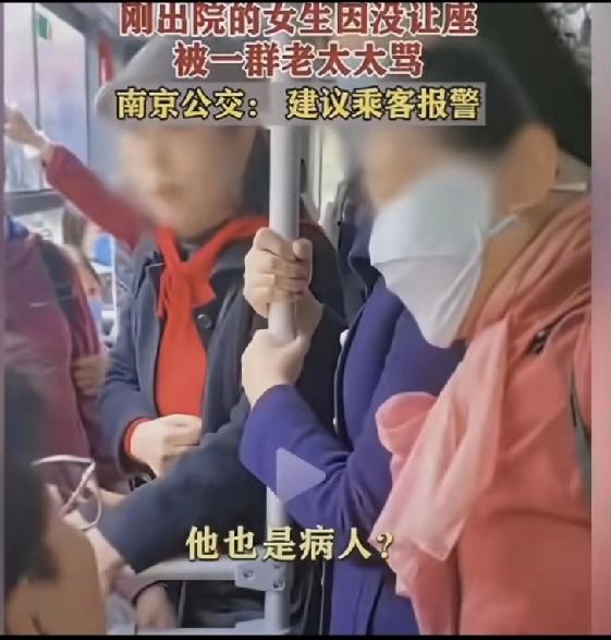 江苏徐州戴先生乘坐开往南京的列车身边一对老年夫妇将两大袋物品挤满小桌过道,对面靠窗男乘客上车入座根本伸不开腿,与两夫妻根本商量不通。 对面小女孩仗义执言:真是又老又坏!这可捅了马蜂窝,遭到老人恶语攻击。最后是乘务员出面将物品移往他处,也给仗义执言的小女孩调了座位。 另一起发生南京的为老不尊事件更恶心!11月27日南京的一辆公交车上,刚做完腹部手术出院的林女士因无法让座,遭到五位结伴秋游的老太围堵辱骂,甚至被推搡,劝架乘客也遭到了牵连。 当时林女士正和母亲乘车去医院复查,捂着小腹艰难坐在后排。五位老太上车后,其中一位戴红围巾的老太强硬要求她让座,林女士虚弱解释自己刚出院没法起身,却被老太质疑是装病骂没教养。随后其他四位老太也围过来一起辱骂母女俩,还把辩解的林女士母亲也当成指责对象。一位男乘客出面劝解时,也被老太们怒斥多管闲事。冲突中还有一位老太推了林女土肩膀,让本就虚弱的她险些摔落座位,当场情绪崩溃落泪。 司机虽多次口头劝阻,但冲突持续了近十分钟, 直到老太们到站下车才平息。南京警方应该介入,这是寻衅滋事吧,给南京正名。