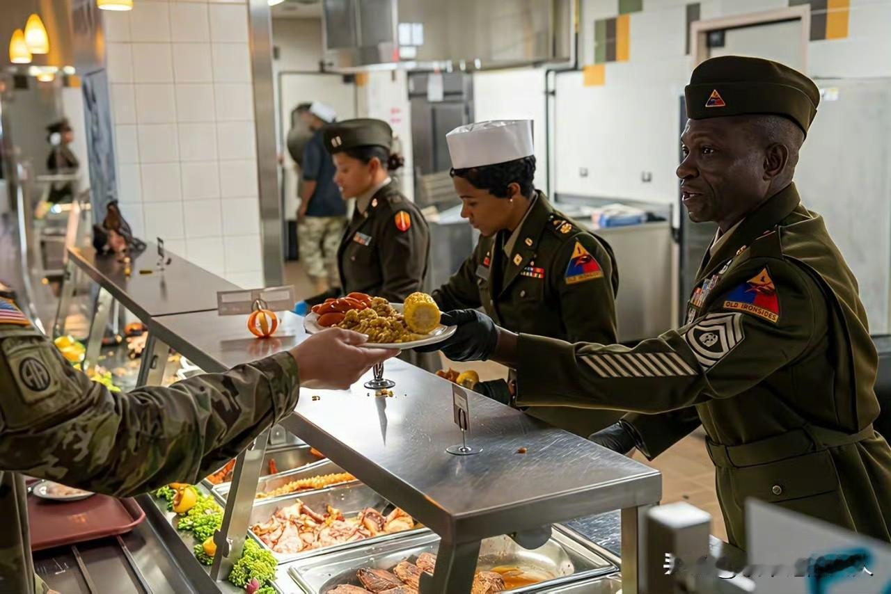 看看,这美国陆军的感恩节伙食摆拍照,看来军费发下来了,不过这雕花,越来越像中国美食的手法了……