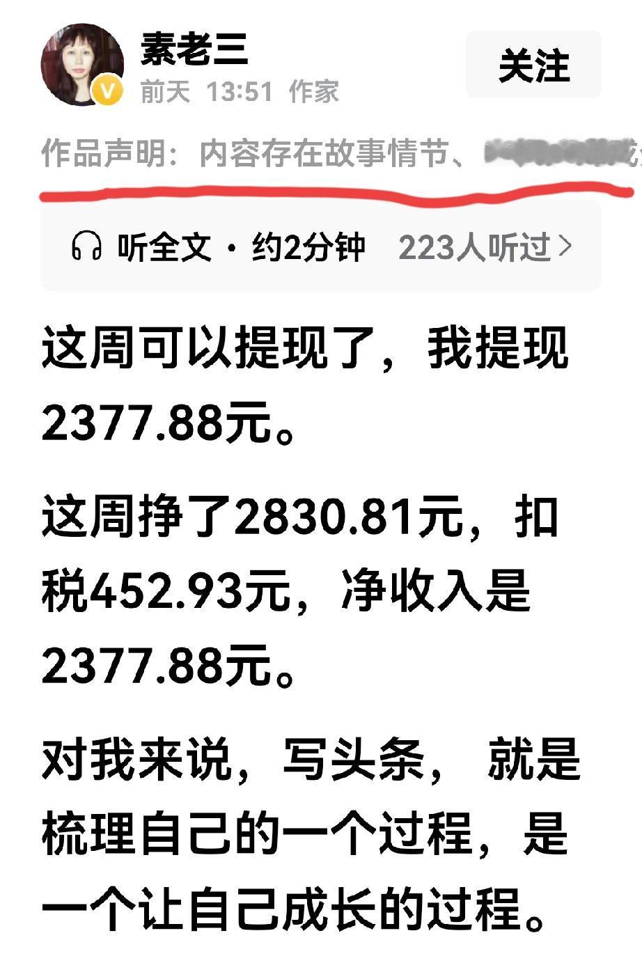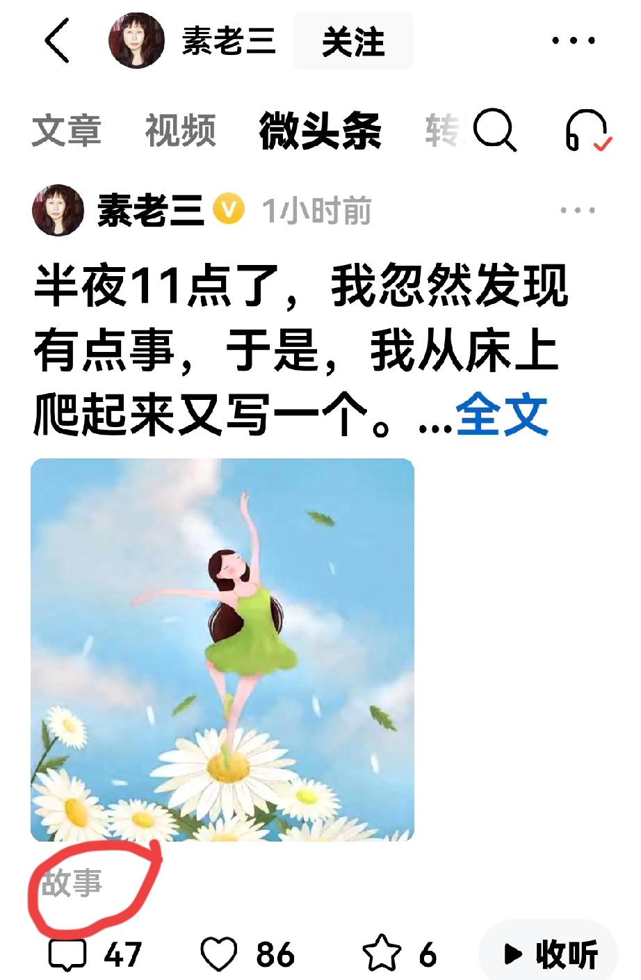访问了网络大V素老三的主页,发现她的每一篇微文都有一个特点,其每篇作品都会被标注为“故事”,即内容含有故事情节,存在演绎虚拟成分,但认真的拜读了她的一些作品,她记录的就是她的日常生活琐事。 为什么会这样呢?难道对日常生活类的作品进行“故事”标注,是作品获取头条认可,给予流量扶持的又一个密码? 突然想起头条好像出了一个公告,说的大概意思就是、含故事情节的作品,作者需对作品进行明确标注,违规者、会遭到头条的处罚,严重的会扣信用分,甚至直接冻结账号。 头条公告中好像还说了,头条之所以规定这一条,是为了头条能够容易对作品的类型进行识别、为头条对作品进行分类减轻压力。 头条既然规定了这样条款,作为头条号平台的创作者就有义务按照头条的规定去履行。 网络大V素老三在作品中说,她的作品其实就是她的生活日记,真真切切,是她生活中的所见、所闻及所感,是她微文的创作素材来源,素老三说别人的素材写完了,就写自己的,除了一些隐私不能让人知道以外,能写的素材,他都会写。 说了这一些,也就是说素老三的作品内容是真实发生在日常生活中的事情、是真真切切的! 仔细想想!头条的规定其实是很有道理的!按照我的理解,故事可分为虚拟的故事与真实的故事,即使记录自己的日常生活,写作过程中,也难免出现夸张,虚拟的成分,因为文章艺术本身就是对日常生活的一种加工,只有深加工才能称之为文学艺术作品! 头条规定对含有故事情节的作品进行标注,头条做得合情合理!本人表示支持! 写到这里,这篇微文也该结束了,但我还有一句话要说,这篇文章不仅仅是支持头条的条款规定,我还要特别提醒友友们!在创作过程中,若存在记录日常生活中的琐事,千万不要忘记了、标注清楚、作品含有故事成分,存在虚拟演绎部分,严格遵守头条的规定,避免自己少踩坑! (本人声明,本文存在故事成分,虚拟演绎部分)