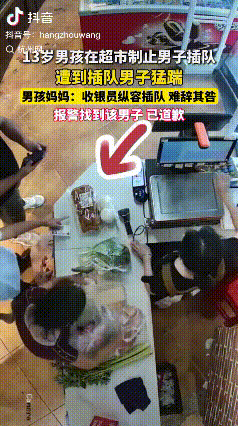 “人狂必有天收!”湖北宜昌,一名13岁男孩在超市排队付款时,被男子插队,男孩上前