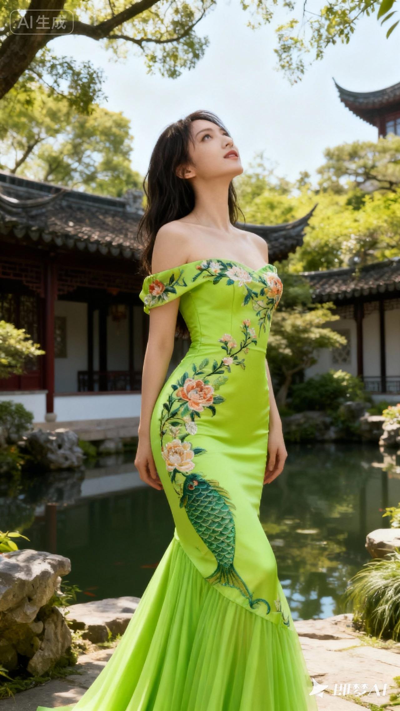 优雅白裙,古风庭院,花间漫步,尽显东方美。