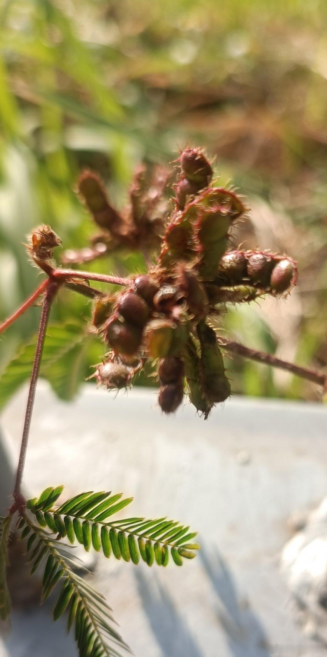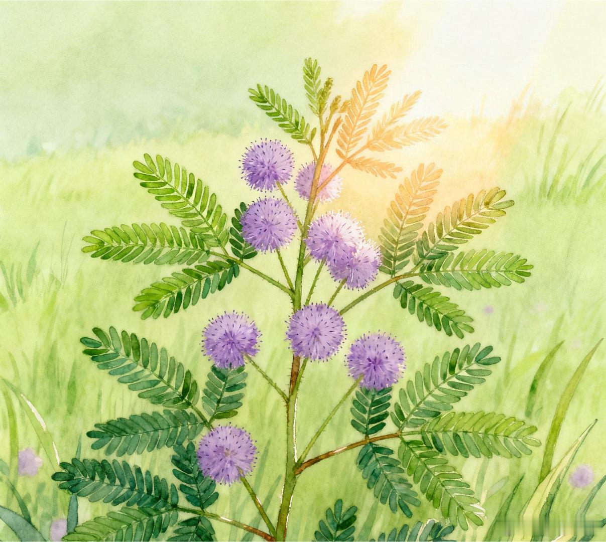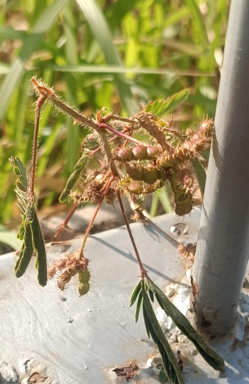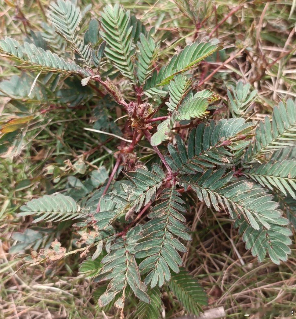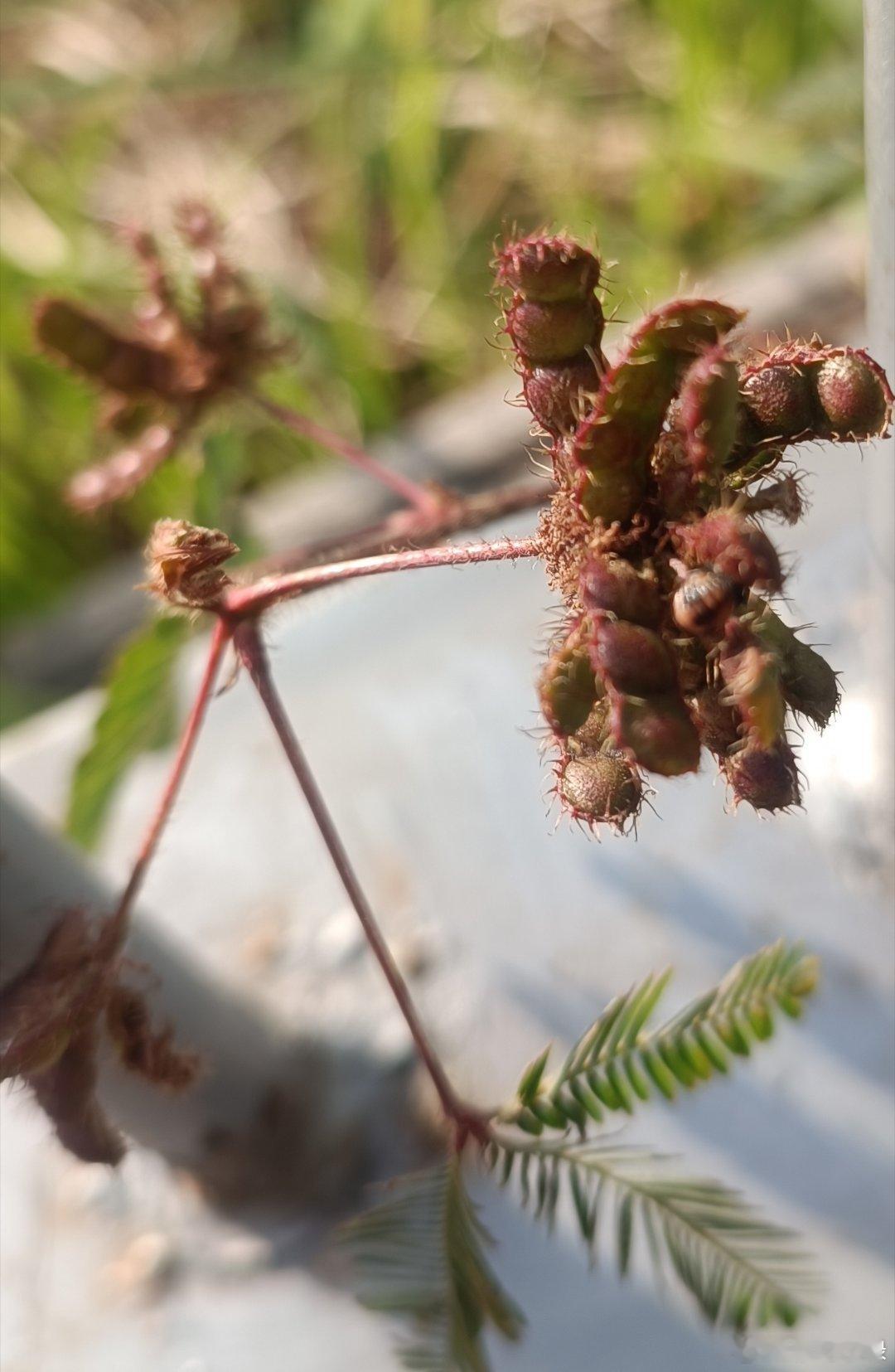 上大学的时候隔壁寝室一个女生养了一颗含羞草,小小的一颗,在花盆里弱不禁风的样子。那女生天天搬进搬出的让它晒太阳,大学4年也没见那含羞草长大,始终只有巴掌高。我以为含羞草就是这样娇气又矮小的植物。来深圳后第一次在绿化带里见到野生的含羞草,我视为珍宝,挖了一颗半个手掌大的小苗,把它移植到花盆里放到我的阳台上去。我每天只浇一点水,结果这含羞草发疯了一样,半年时间就铺满了我的小阳台,都没地方站人了。这里公园里,绿化带,河滩边上含羞草随处可见,都是野生的。夏天的时候会开手指头大小的紫色小花,看起来像一个小小的紫色绒球,秋天会结荚果,一粒一粒的小豆荚连成一串,外覆毛茸茸的小刺。含羞草的花,叶,果都别具一格。双胞胎兄弟同天迎娶双胞胎姐妹以后他们的孩子是不是也长得一模一样啊?