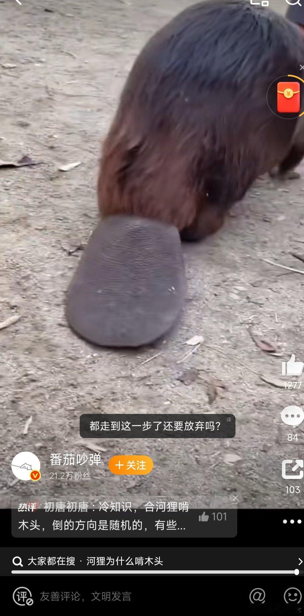河狸已经连续啃了15分钟第一次知道河狸的尾巴长这样!看起来像鸭嘴兽的尾巴。一个扁平的薄铲子,它是靠尾巴划水吗?