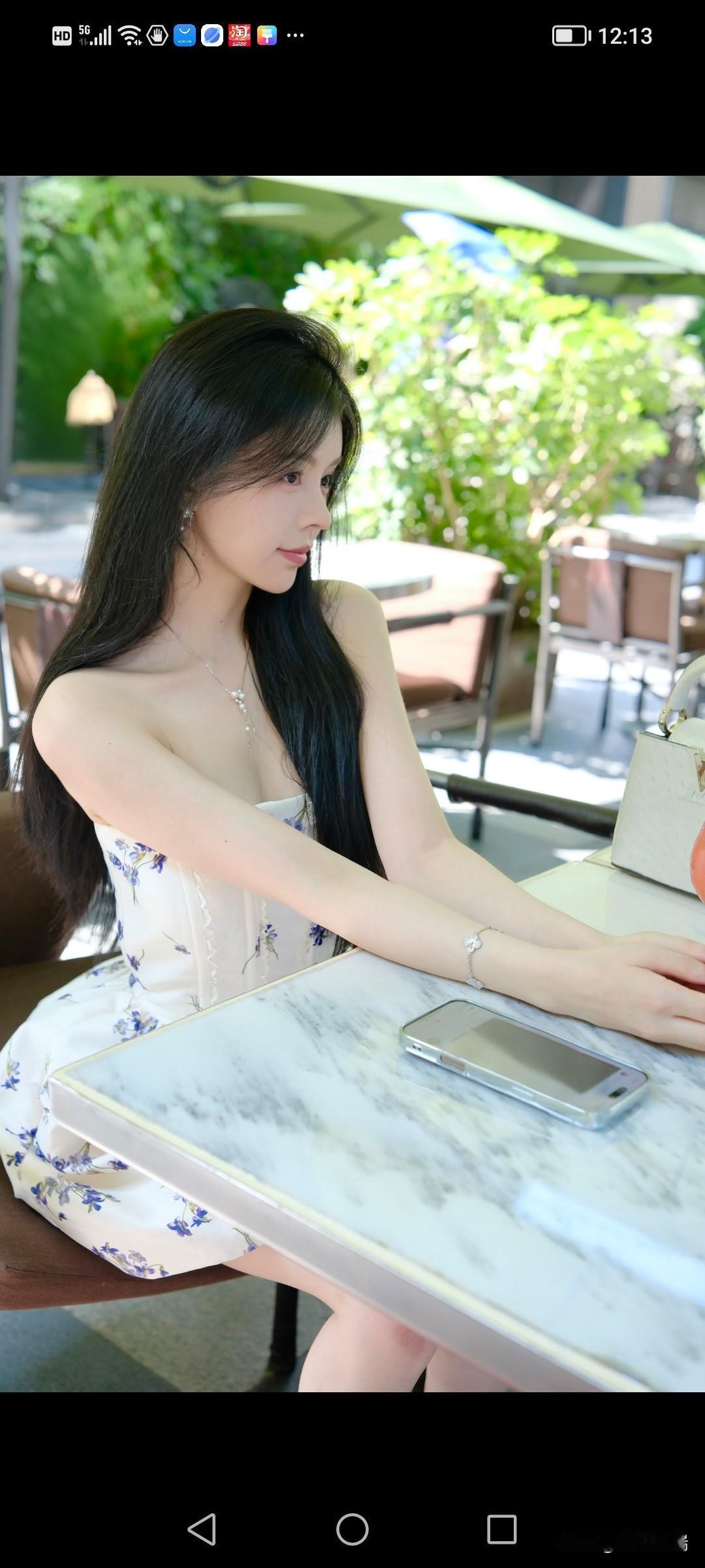 午后,清新少女在绿意盎然的咖啡馆享受宁静时光。