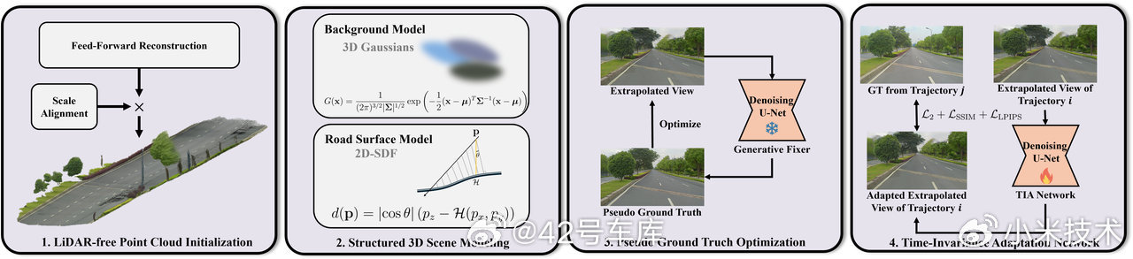 在 ICCV 2025 顶会收录赛事 RealADSim 挑战赛(外推新视角合成赛道)中,小米汽车团队拿下冠军,并受邀在大会分享技术成果。本次赛事聚焦自动驾驶仿真中的「新视角合成」难题。小米汽车基于 3D 高斯泼溅提出:- 无激光雷达点云初始化- 融合几何先验的路面 2D-SDF 建模- 生成式外推修复- 跨时间段自适应建模最终在 19 支队伍中脱颖而出,以 PSNR 18.228, SSIM 0.514 与 LPIPS 0.288 的表现,荣获本次比赛冠军。那么问题来了,这些技术从挑战赛到量产落地,大概还有多久?新能源汽车42how小米汽车