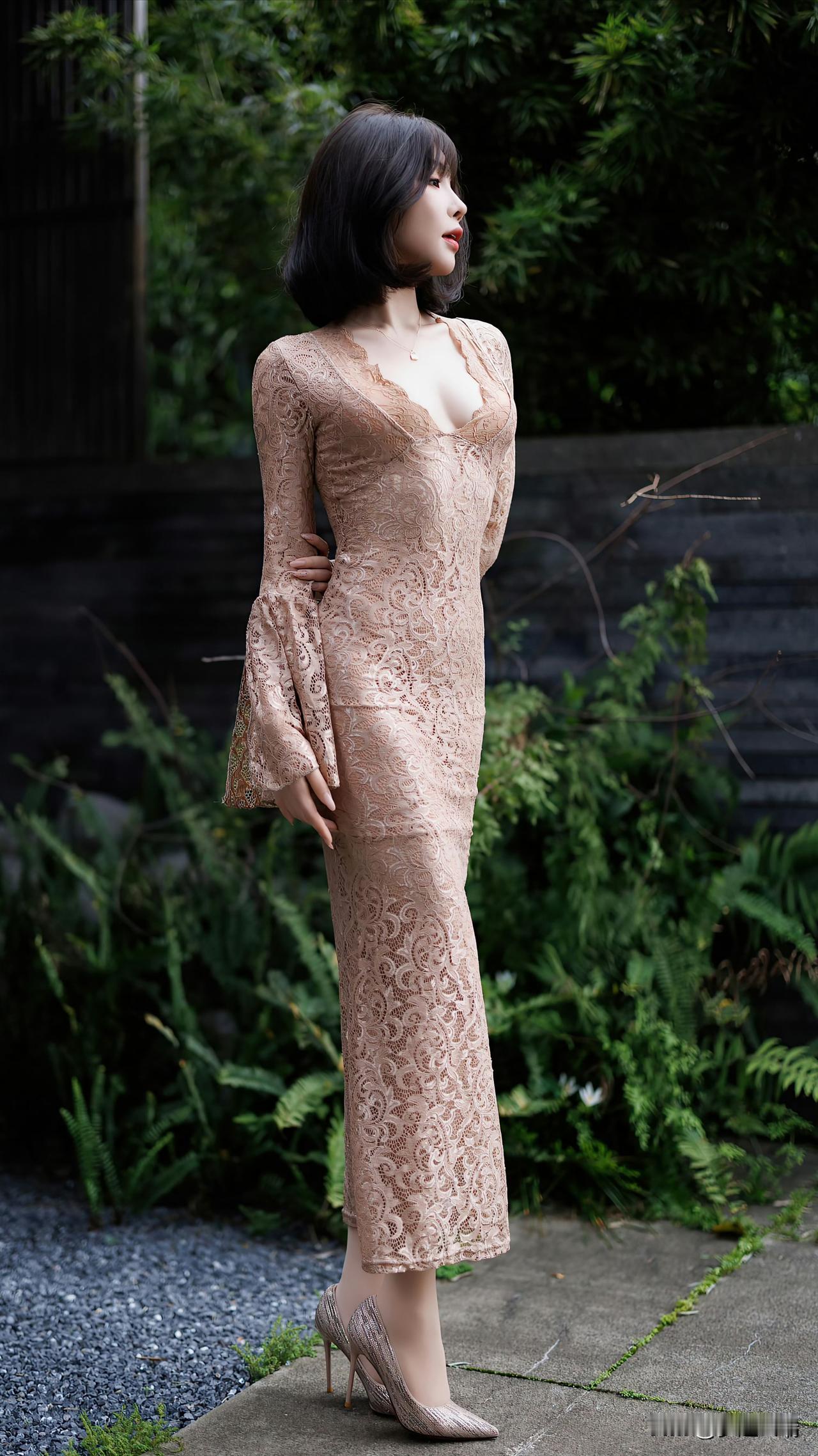 白裙裹着柔缎般的光,珍珠缀在颈间耳侧,指尖轻抵的弧度里,是漫开的雅致。女性气质