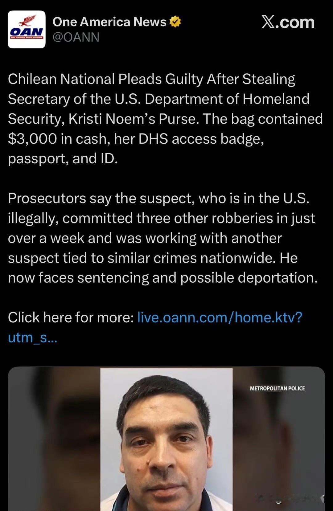 偷国土安全部部长包的人原来是非法移民。当时在几个警卫面前,成功将餐厅吃饭的部长放在旁边的包偷走,可算是小偷中的高手。