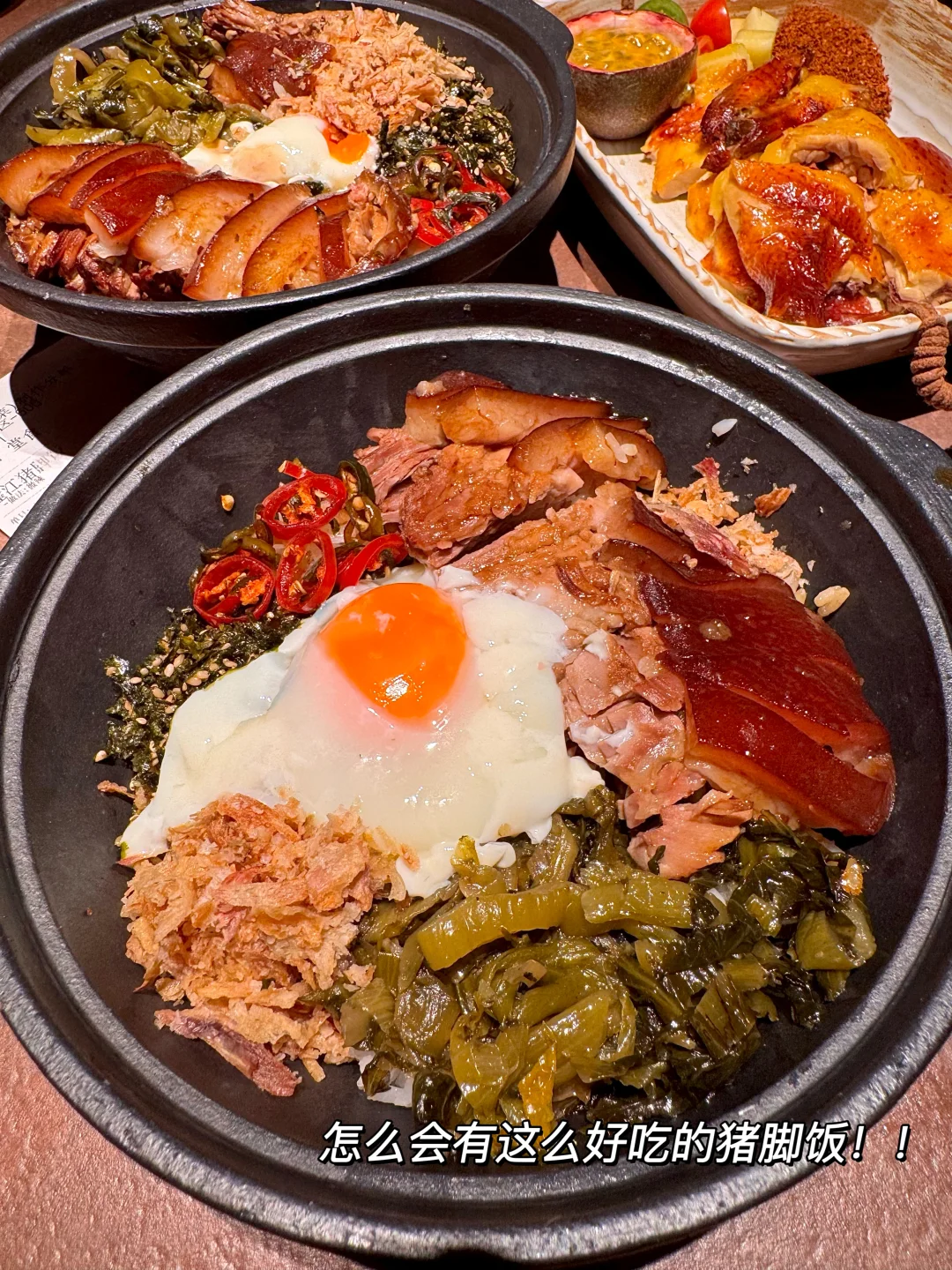 古法窑鸡、牛肉虾沙茶面、生腌拼盘、瑶柱海鲜砂锅粥……每一道都亲测好吃! 逛完西湖建议直奔这家!叫📍九洲籍)环境好价格也不贵,主打新派潮菜!!和朋友5天吃了3次! 强推这个新派隆江猪脚饭!好好吃啊!淋上酱汁🤤米饭粒粒分明又湿润入味…就连基础的酸菜配菜都好好吃!竟然还吃到了三文鱼鹅肝波奇饭!鲜甜可口料巨巨巨多!还有海石花龙眼、红豆沙鸭母捻各种潮州糖水……我们点了满满一桌都没踩雷! 唯一缺点就是饭点生意太好!想吃的话记得早点来。。