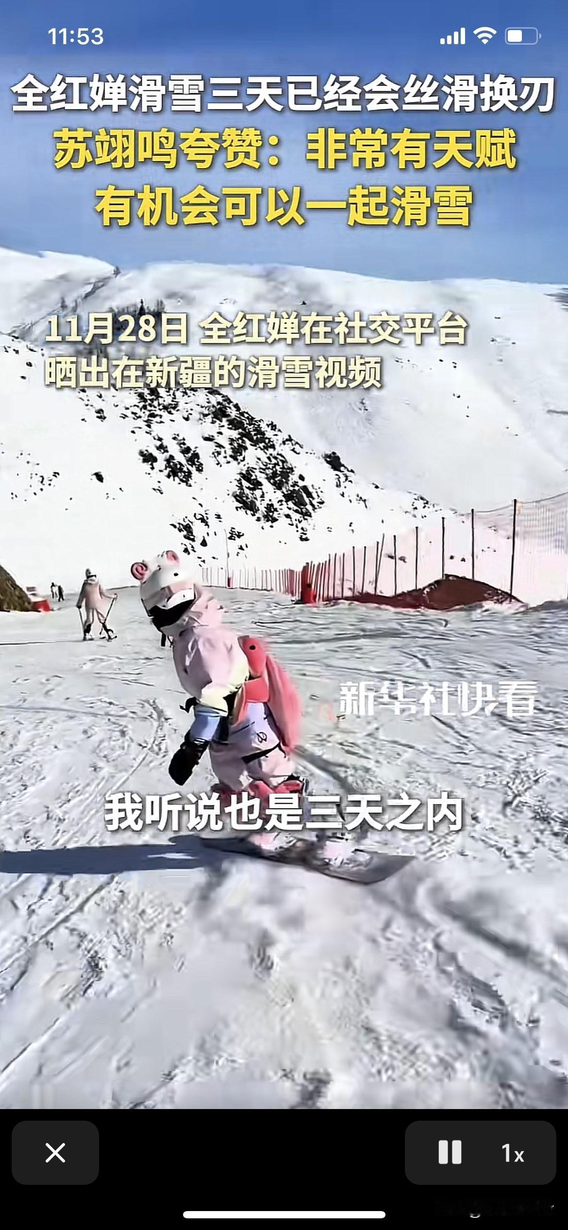 全红婵三天学会滑雪。 全红婵就是有运动天赋。学什么都快。聪明的婵宝宝。真喜欢你。