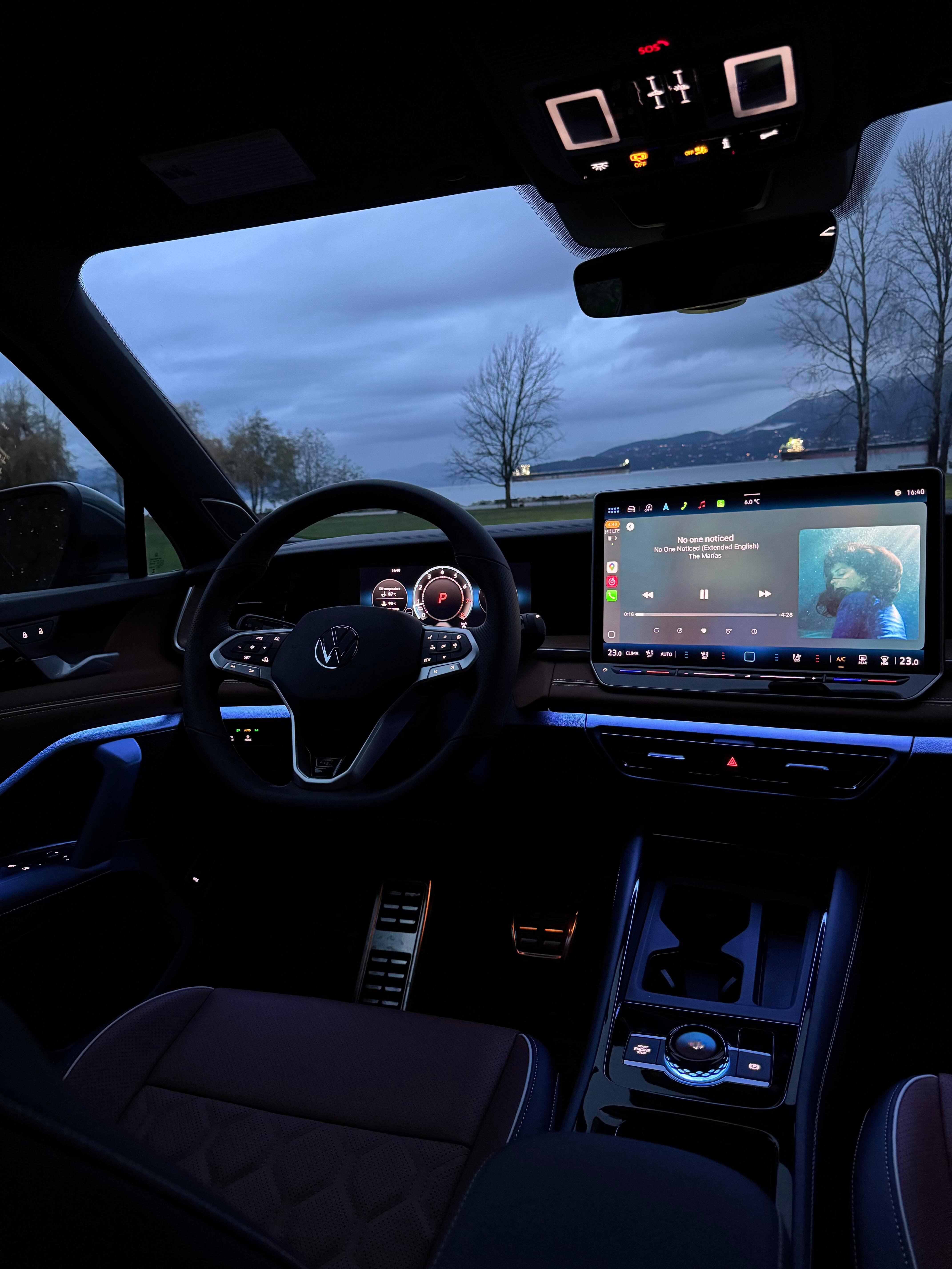 不吹不黑,这套内饰还真有点东西。说实话,以前总觉得大众的内饰都长一个样,没啥特别的。但这几天开了朋友新提的26款途观,倒是让我改观了。座椅这个棕白双拼的配色挺讨喜,皮子摸着质感不错,加上白色的滚边和缝线,看着就挺高级。虽然不是什么特别名贵的皮料,但整体搭配起来确实显档次。最让我意外的是中控台上这块实木装饰,一开始觉得会不会老气,没想到配上暖色的氛围灯,晚上看着居然挺有质感,比照片上好看多了。动力也是没得说,2.0T的发动机,268匹马力,拉着不到1.8吨的车身,提速特别轻快。开了一周,整体感觉挺满意的,过两天详细说说这车的优缺点。