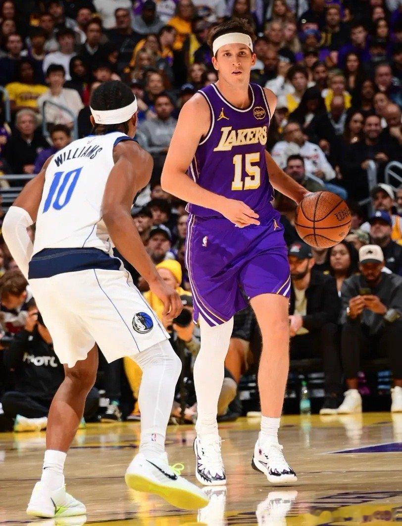 湖人6连胜稳居西区第二!东里合砍73+10三分 40岁詹皇大笑太开心湖人vs独行侠詹姆斯 北京时间11月29日,NBA杯赛,湖人以129-119击败独行侠拿到6连胜+杯赛四连胜,湖人早已锁定杯赛八强,湖人也稳坐西部第二的宝座。这场比赛里夫斯、东契奇两人的状态非常之好,两人都拿到30+的数据 ,可以说老勒布朗是躺赢,东皇+里皇合砍73分+10个三分。东契奇首节的个人表现依旧很不错,三分、策应、突破无所不能,而且他只出手6次命中4个,三分3中2,克莱封到他的脸上都命中,东契奇10分1篮板3助攻,东契奇这个能力强到发紫。第二节是里夫斯时间,他单节4中4+三分2中2+罚球4中4拿到14分2篮板1助攻,半场打完里夫斯19分,三分命中率75%;东契奇半场8中5拿到18分4助攻2篮板,詹姆斯上半场4中1手感不佳拿2分6助攻1抢断1盖帽。易边再战,詹姆斯的外线开了,里夫斯三分也续上,东契奇三分颠进,湖人再度反超比分,第三节打完里夫斯三分4中3拿9分2篮板1助攻,他三节已经拿到28分,东契奇三节30分,没错这两人三节合计拿到58分,詹姆斯手感不佳并没有影响什么。末节詹姆斯、里夫斯带队时一度被独行侠反超,但东契奇回归后连续助攻里夫斯,里夫斯连拿10分再度帮助湖人反超打停独行侠。东契奇造犯规上罚球线后全场高呼MVP,东契奇还剩1分25秒再度上罚球线两罚全中后锁定胜局。全场比赛,东契奇40分钟,18中10+三分9中4拿到35分11助攻5篮板;里夫斯41分钟15中12+三分8中6,拿到38分8篮板3助攻;詹姆斯34分钟拿到13分7助攻5篮板1抢断。比赛还没结束,老詹跟东契奇聊天时已经笑得非常开心,他还去解说席跟韦德聊了两句,这个赛季老詹太轻松了。