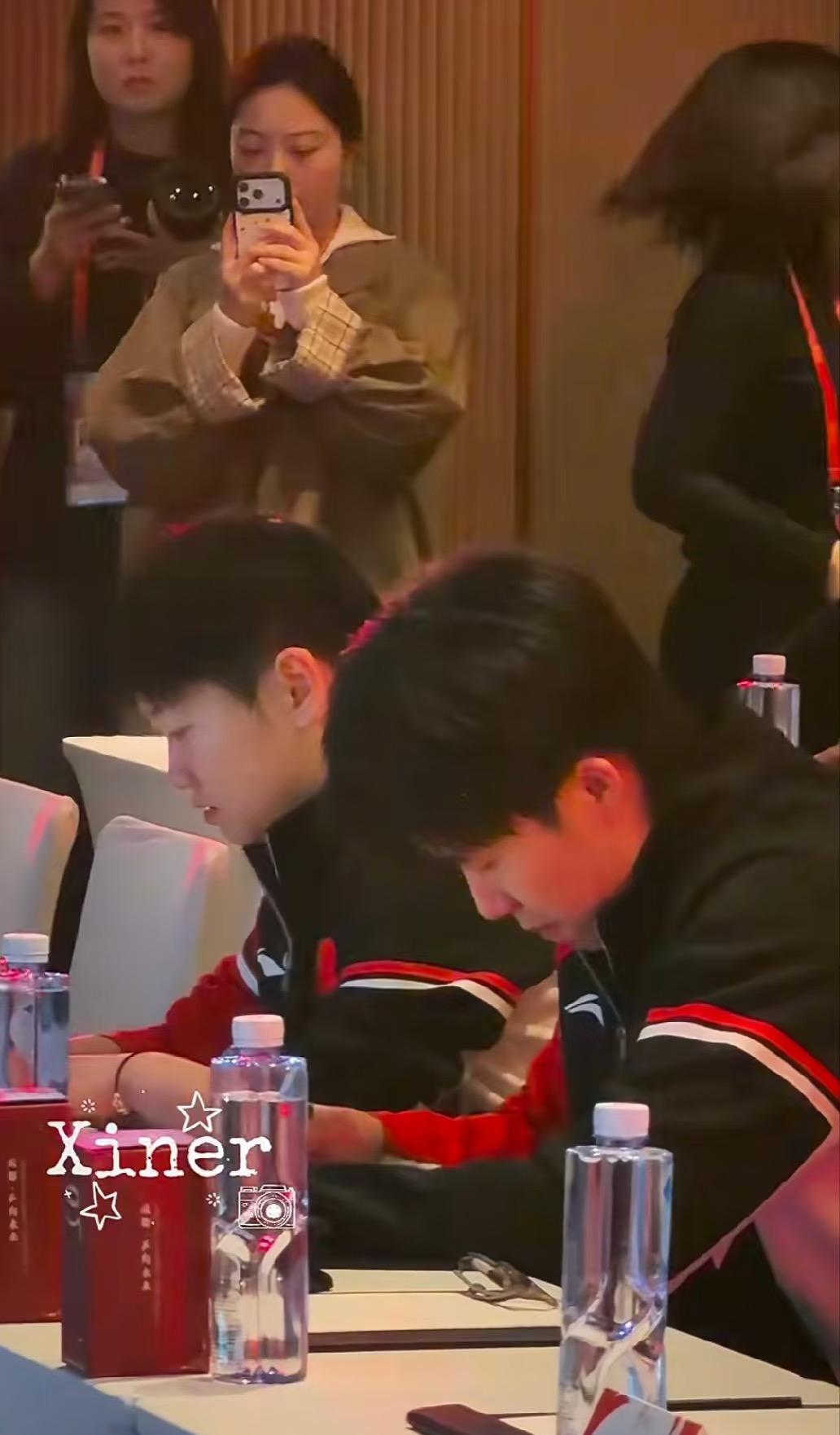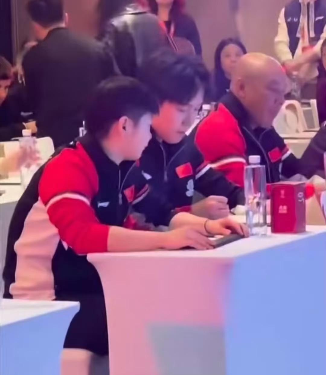 抽签阶段,头哥和肖指导在,坐在前面聚精会神看着,这俩就安心了,结果小莎后来也加入了,这是我们的混双,这俩都来了! 肖指导,孙颖莎,王楚钦坐在一起,这下真齐全了,刚开始两个人就很开心了,结果三个人都在,都怀疑自己的眼睛,这次抽签预备,特别惊讶,主要是惊喜,还是意外之喜!